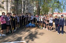 В рамках акции "Весенняя неделя добра" лицеисты организовали в своем школьном дворе креативный субботник "Зеленая волна"