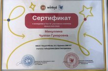 Ученица 9М класса нашего лицея Миннуллина Чулпан вошла в Топ -10 олимпиады Winkind. Ей вручили термос и значок. Учителю татарского языка и литературы Габидуллиной Дине Гаязетдиновне вручили благодарственное письмо. -