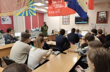 В рамках месячника патриотического воспитания в лицее состоялась встреча учащихся 10 класса с участником боевых действий в Чечне Н.В.Токаревым