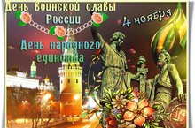 4 ноября в России отмечается День народного единства. Праздник был учрежден Федеральным Законом "О внесении в статью 1 Федерального закона "О днях воинской славы (победных днях) России", подписанным в декабре 2004 года президентом России Владимиром Путиным. Впервые в России этот новый всенародный праздник отмечался 4 ноября 2005 года. День народного единства был учрежден в память о событиях 1612 года, когда народное ополчение под предводительством Кузьмы Минина и Дмитрия Пожарского освободило Москву от польских интервентов.