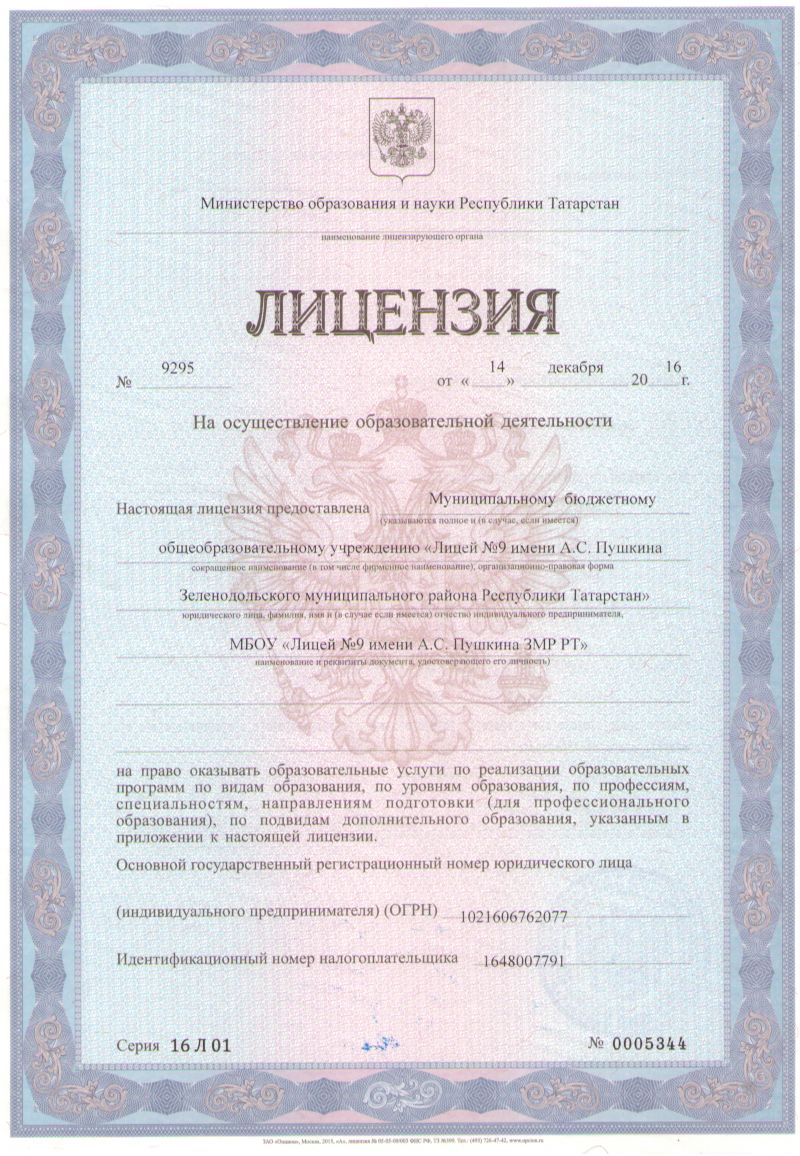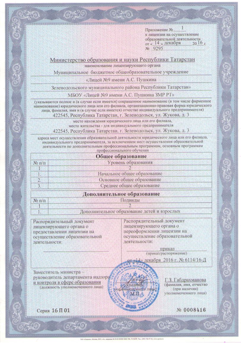 | Короткое название: | МБОУ "Лицей № 9 им.А.С.Пушкина ЗМР РТ" |