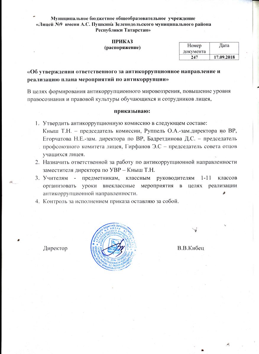 План лицея по антикоррупционной деятельности