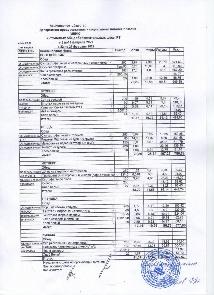 1 неделя (8.02 - 13.02, 22.02 - 27.02), 32 руб