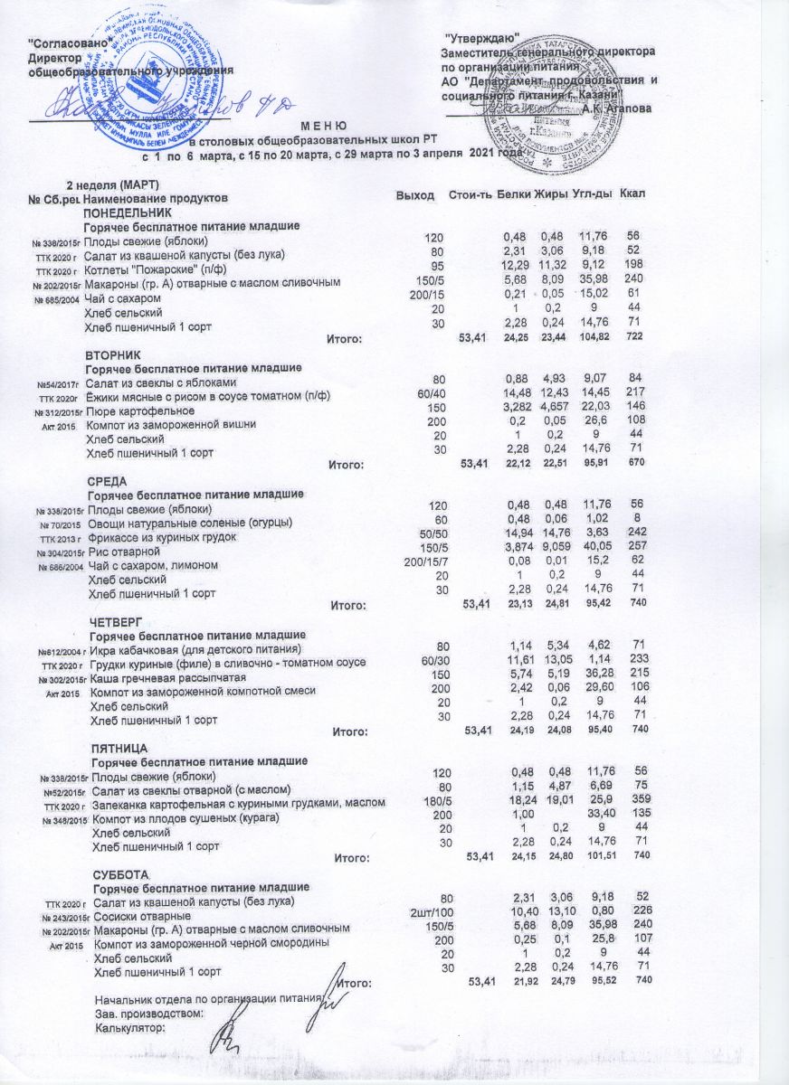 Меню на март: