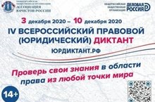 С 3 по 10 декабря 2020 года в онлайн-режиме пройдет IV Всероссийский правовой (юридический) диктант.