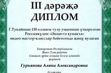 22 .04.2016 года в Арске прошел Всероссийский конкурс видео мастер-классов "В гостях у сказки","Әкияттә кунакта" к 130-летию Г.Тукая!!! Ученица 8 класса заняла 3 место в номинации "Лучшие персонажи из сказок Габдуллы Тукая!!!