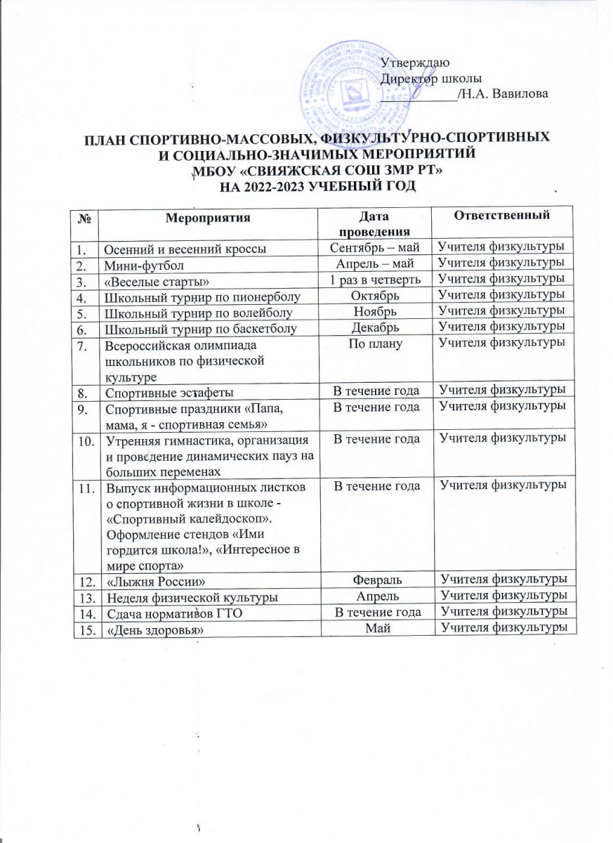 - План спортивно-массовых, физкультурно-спортивных и социально-значимых мероприятий на 2022-2023 учебный год