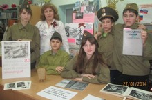 Точно текст присяги, тебе на верность ЛЕНИНГРАД.Час памяти, посвященный 70-летию полного освобождения Ленинграда от фашисткой блокады. В библиотеке была организована тематическая выставка книг о блокаде. Дети читали стихи Ольги Берргольц, вспоминали историю Тани Савичевой, рассказывали о дороге жизни через Ладогу, по которой привезли первых воспитанникоа в наш детский дом.Чтобы помять всю тяжесть и невзгоды, выпавшие на долю ленингадцев, разделили буханку хлеба по 125 грамм - дневная норма блокадного времени. Почтили память всех жертв того времени минутой молчания.