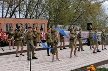 Выступление воспитанников детского дома у мемориала павшим в Великой Отечественной войне.
