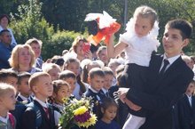 Второй год подряд в нашу школу пришли два первых класса. Они волнуясь, но звонко приветствовали свою школу стихами. Кандидат в депутаты Антон Юрьевич Артюхин приподнёс им всем подарки от администрации района и подарил школе сертификат на мультимедийный проектор для кабинета физики.
