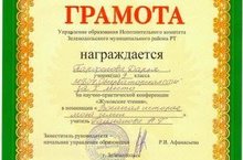 Поздравляем Парфенову Дарью (9 класс), занявшую 1 место на научно-практической конференции «Жуковские чтения» в номинации «Военная история моей семьи» (учитель Гайнанова Н.Г.), а также учеников 5 класса Яшина Дмитрия и Гафурова Марселя (учитель Стойлова И.О.), награжденных в номинации «Трагедия концлагерей» Грамотами Управления образования Исполнительного комитета Зеленодольского муниципального района РТ