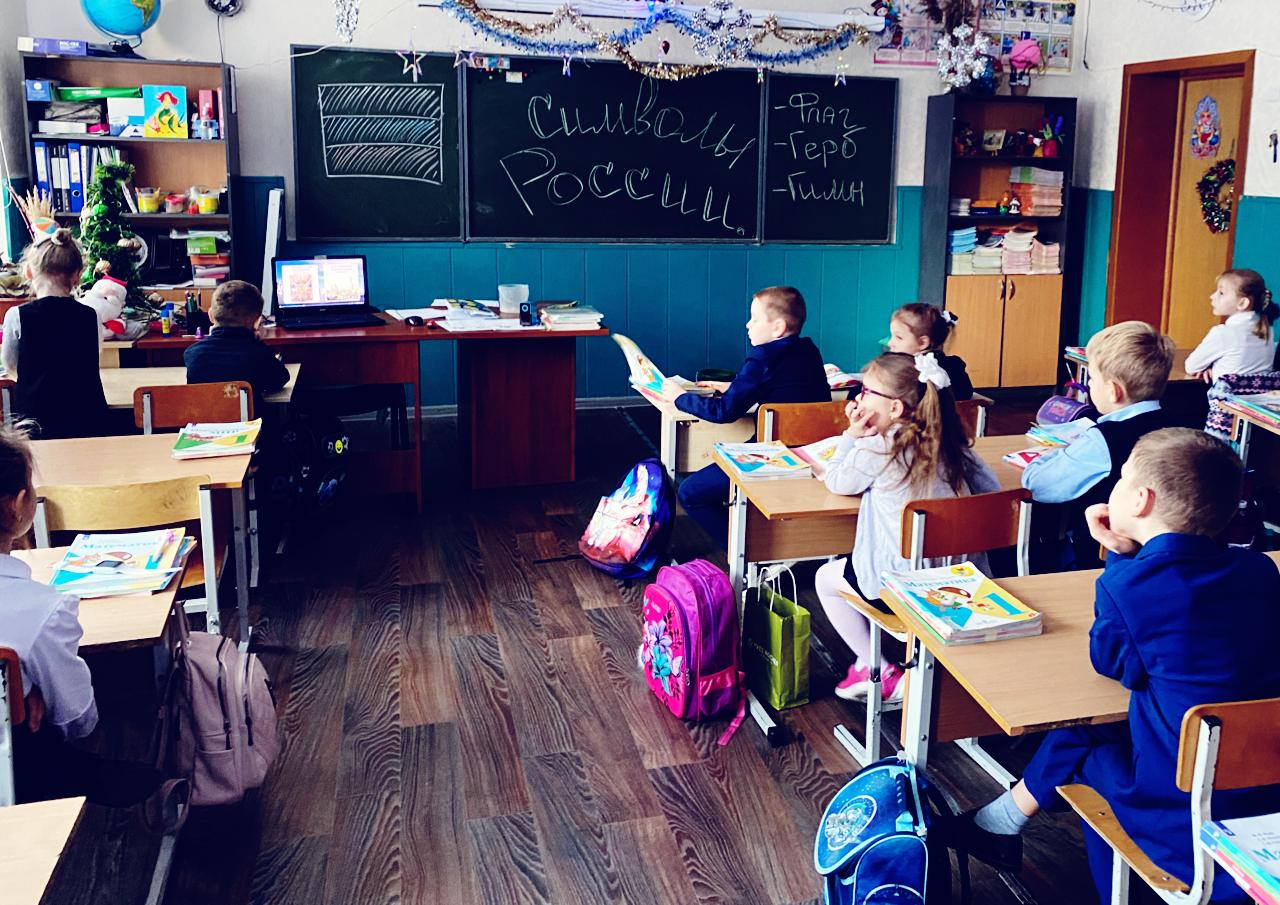 На занятии дети узнали, что такое государственные символы, что они означают и почему каждое государство имеет свой герб, флаг, гимн. Беседа сопровождалась видео презентацией, благодаря которой дети подробнее познакомились с символикой нашей страны. Ученикам предложили поразмышлять над вопросами: почему так важно для государства иметь свои символы, учреждать в их честь праздники, почему так важно каждому гражданину уважать любой государственный символ, в чем проявляется уважение?