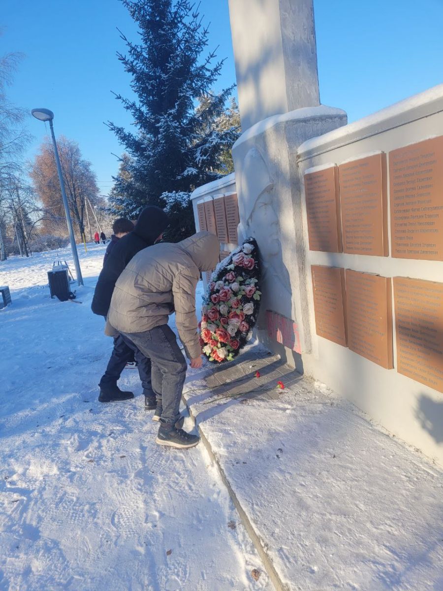 Юнармейцы нашей школы убрали снег и мусор у памятника. Возложили цветы и почтили память погибших минутой молчания.