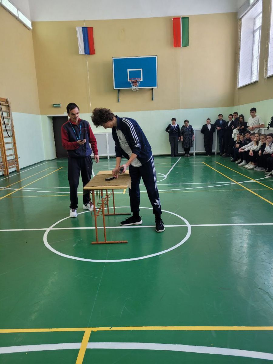 Для учащихся 8-11 классов был проведён военно- спортивный праздник, который направлен на воспитание чувства патриотизма, уважение к мужчине, как защитнику Отечества, сильному, смелому. В нём проявляются не только физические качества учащихся, но и смекалка, находчивость, способность ориентироваться в любой жизненной ситуации. Военно- спортивное мероприятие помогает молодым людям быстрее адаптироваться к суровым будням армейской жизни, тем самым смягчить стрессовую ситуацию, возникающую для них в новых условиях.