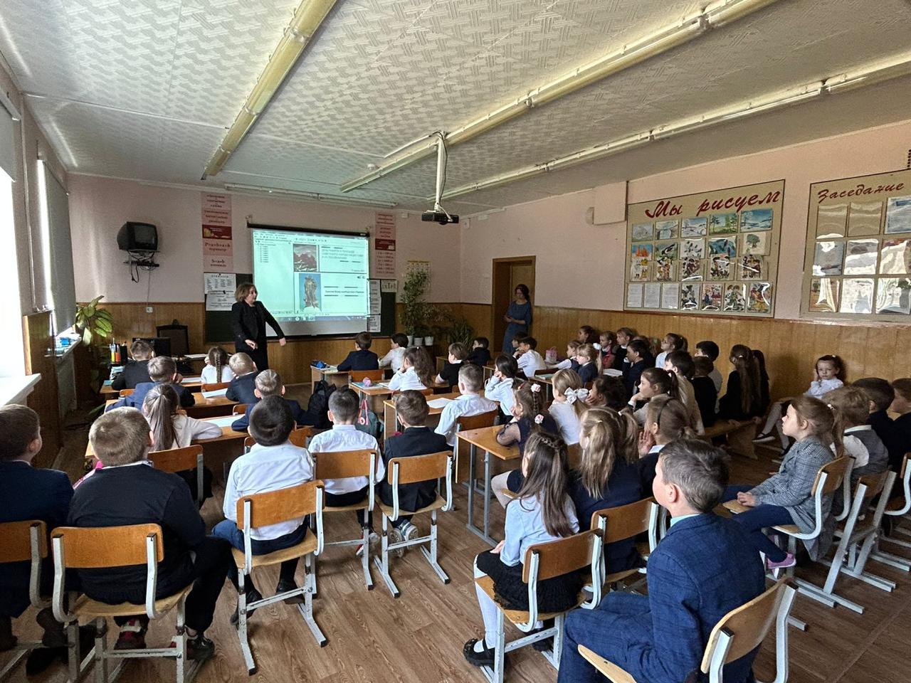 В 1-4-х классов разговор вели о том, что СССР победил в Великой Отечественной войне благодаря сплоченности народа и мужеству армии. В Германии, которая напала на СССР, стоит памятник «Воину-освободителю», история которого связана с подвигом Николая Масалова. О нем ребята узнали, посмотрев видео. Затем школьники посмотрели фотографии мемориалов и памятников, посвященных жертвам войны.