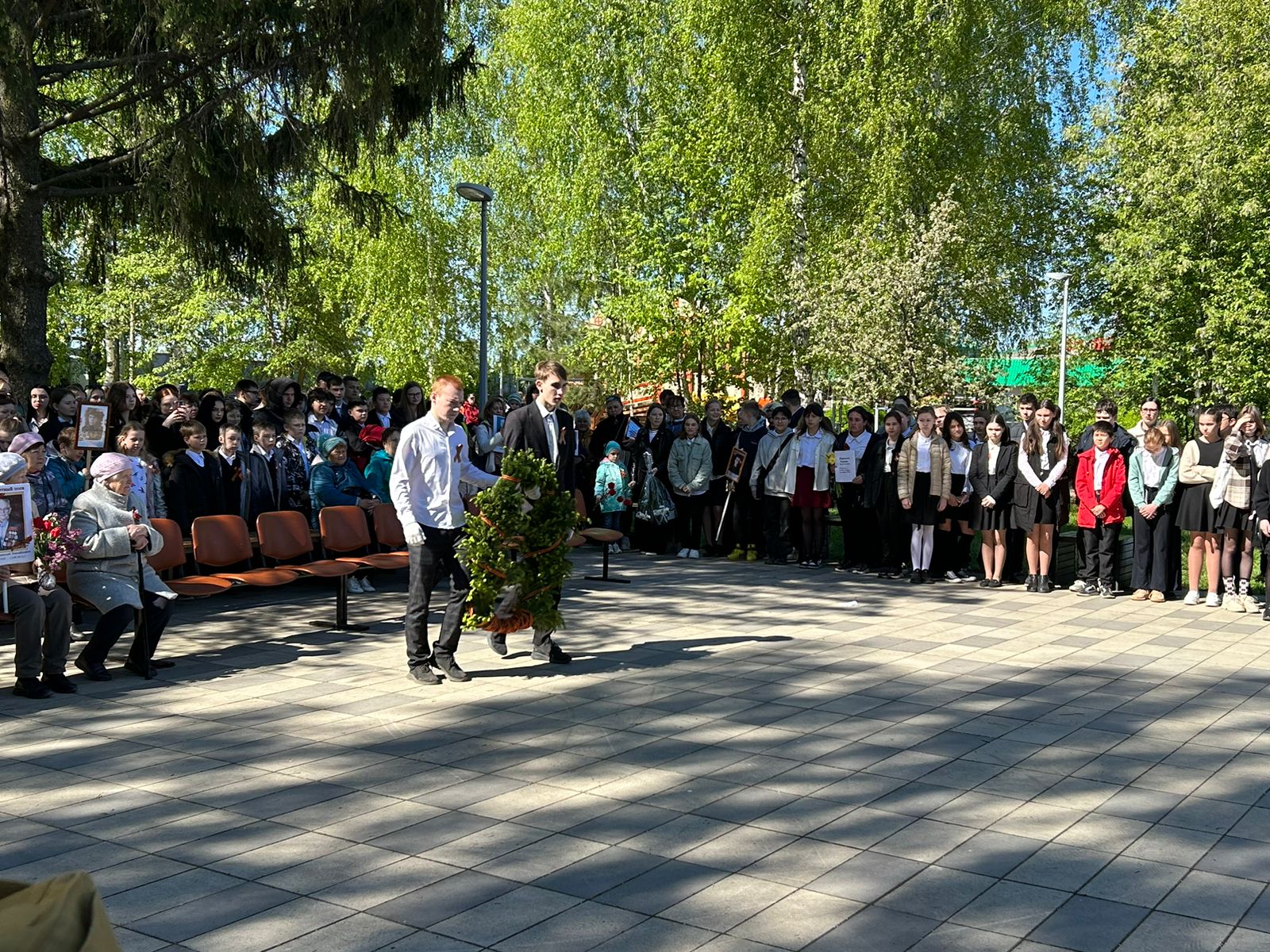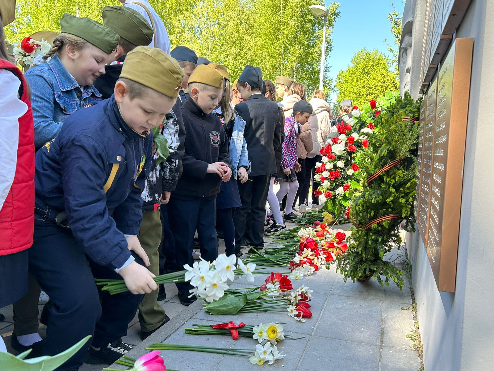 Сегодня коллектив учащихся и педагогов школы принял участие в торжественном митинге возле памятника погибшим воинам.