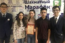 На втором месте - вторая юная команда гимназии № 3: Салихзянов Салават, Серяков Даниэль, Саттарова Зарина, Ерамасова Милана