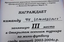Открытый осенний турнир по мини-футболу среди юношей 2003-2004 г.р. г. Волжск 25.11.2019