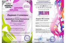 Поздравляем преподавателя Дурандину Е.Е. и ее ученицу Мельник Дарью с Дипломом Лауреатов III степени в Международном многожанровом онлайн конкурсе «Пространство культуры». Поздравляем Тимергалиеву Эмилию с дипломом Лауреата III степени ( преп. Дурандина Е.Е., конц. Сибгатова Д.Р.) в Международном конкурсе искусств «Симфония талантов»!