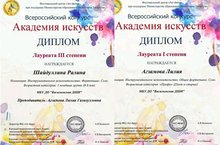 Поздравляем с победой во Всероссийском конкурсе «Академия искусств» ученицу музыкального отделения Васильевской ДШИ Шайдуллину Ралину, ставшую Лауреатом III степени, и ее преподавателя Агзамову Лилию Газизулловну –Лауреата I степени.Так держать!Желаем новых творческих свершений!