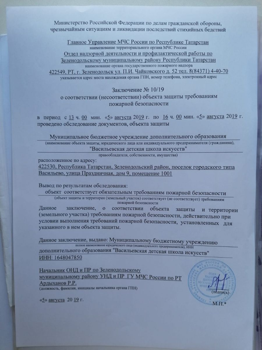 Заключение о соответствии обьекта требованиям пожарной безопасности