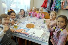24 октября Преподаватель Сафина Эльвира Равильевна с учащимися эстетической группы "Ромашки-Рефаляшки" проходили тему "Деление длительностей" нетрадиционным способом, разрезали пирог, соответственно длительностям, а потом пили чай.