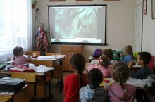 Благодаря тому, что в нашей школе появился проектор, детки могут наслаждаться просмотром произведений не выходя из класса.