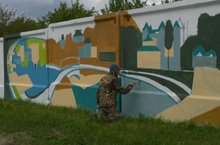 Художники за работой. Бетонный забор на ул. Молодежная. 11.06.2018