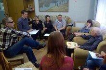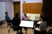 16.11.2017 Анатолий Валентинович Крылов проводит экскурсию в выставочном зале ЗДХШ по своей выставке для председателя ОВТО Союза художников России в РТ И.И.Сиразиева, членов правления СХР РТ А.Кузнецова, В.П.Аршинова и директора Зеленодольской художественной галереи Т.П.Садковой. 16.11.2017