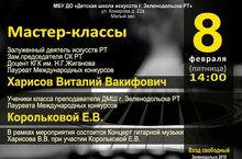 Приглашаем 8 феаряля в 14.00 ч. на Мастер-класс Заслуженного деятеля искусств РТ, Зав.председателя СК РТ, Доцента КГК им.Н.Жиганова, Лауреата Международных конкурсов ХАРИСОВА ВИТАЛИЯ ВАКИФОВИЧА с учениками преподавателя ДМШ, Лауреата Международных конкурсов Корольковой Е.В.