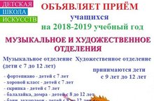 ОБЪЯВЛЯЕТСЯ ПРИЁМ УЧАЩИХСЯ НА 2018-2019 УЧ. ГОД 18.05.2018