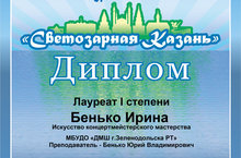 Поздравляем преподавателя фортепианного отдела Бенько Ирину Дмитриевну, принявшую участие во II Международном конкурсе пианистов «Светозарная Казань» в г. Казани и занявшую почётное I место в номинации концертмейстерское мастерство. Желаем дальнейших успехов!