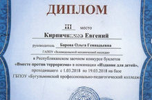 Результаты Республиканского конкурса "Вместе проттив терроризма" 12.04.2018