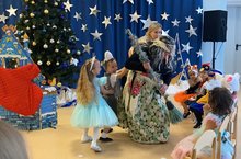 В нашем детском саду новогодние мероприятия проходят для воспитанников всех 12 групп. Красиво украшенный зал, нарядная елка, великолепные костюмы, подарки, Дед Мороз, Снегурочка и множество других сказочных персонажей ожидали сегодня наших ребят. Дети окунулись в праздничную атмосферу приключений и поучаствовали в интересных конкурсах. Море радости и эмоций вызвали подарки, врученные детям из рук самого Дедушки Мороза! Праздник получился очень весёлыми и радостными, оставил много приятных впечатлений и эмоций.