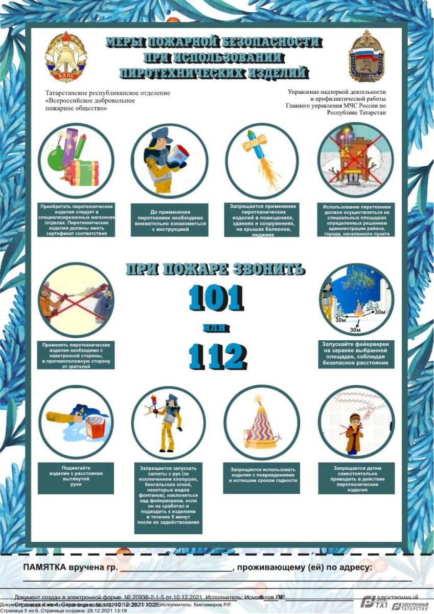 Памятка о мерах пожарной безопасности при использовании перотехнических изделий