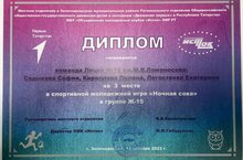 В своей возрастной группе (ж-15): Садыкова София (9Б класс), Кириллова Полина (9Б класс) и Легостаева Екатерина (8В класс) в команде с педагогом-организатором Ариной Алексеевной заняли 3-е место!