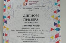 Поздравляем призера республиканской очной олимпиады по татарскому языку «Эрудит» ученицу 6 А класса Хаялиеву Лейлу!