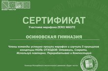 Наши учащиеся гимназии стали участниками молодежного экологического движения "Будет чисто" (куратор - Хатимова Л.И.). Они приняли участие в онлайн-марафоне. В течение 8 дней участники выполняли задания и выкладывали посты на страницах в социальной сети "ВКонтакте" . А марафон был посвящен концепции «ZERO WASTE», что в переводе с английского обозначает ноль отходов. В конце марафона наши участники экодвижения получили сертификат и подарок от молодежного экологического движения "Будет чисто".