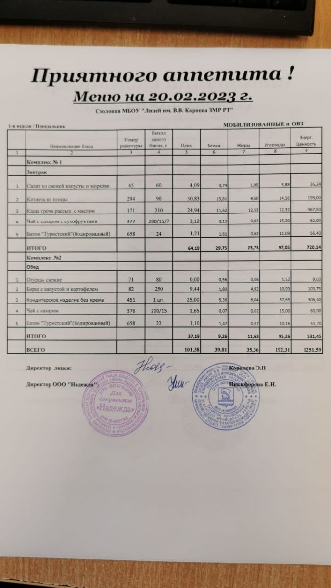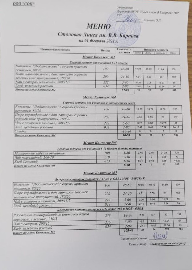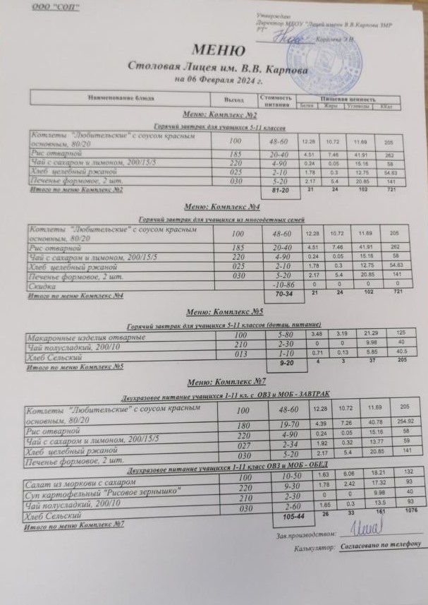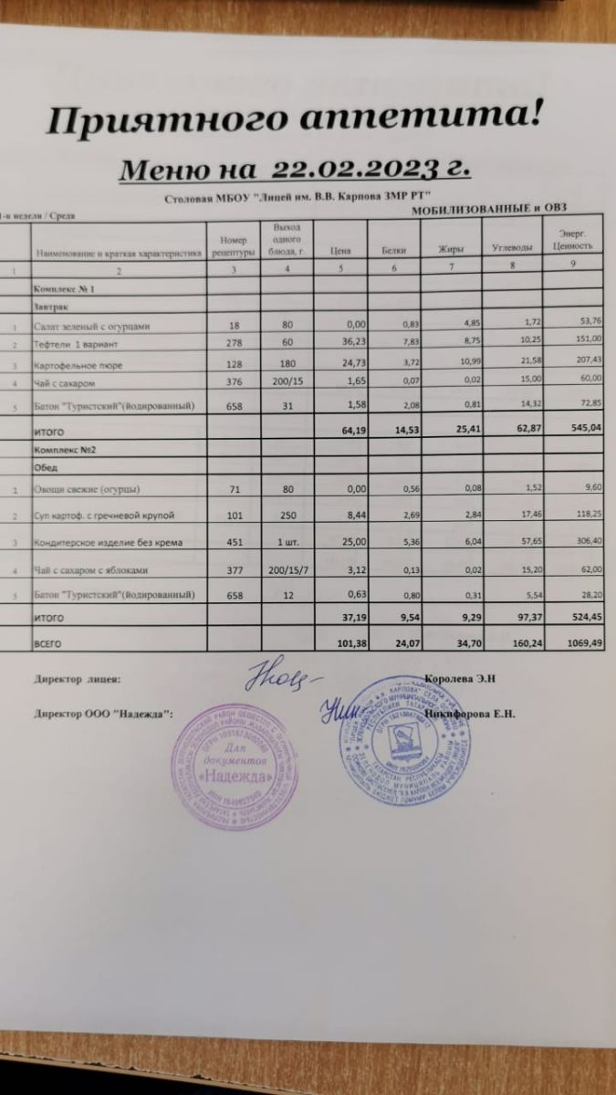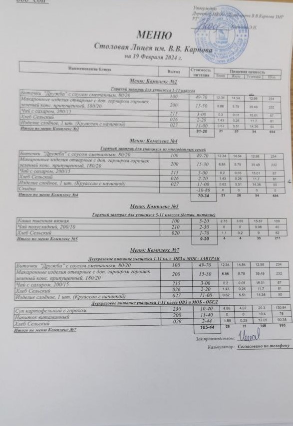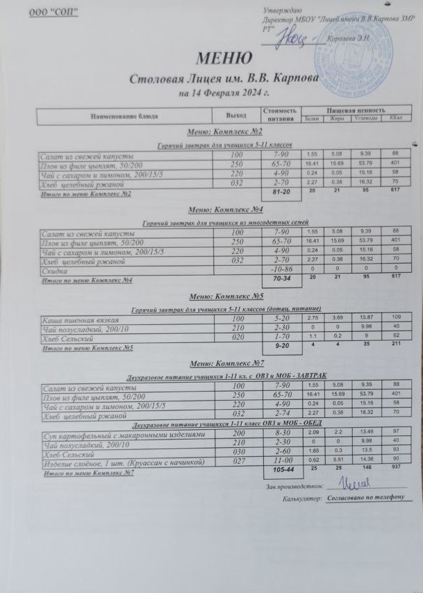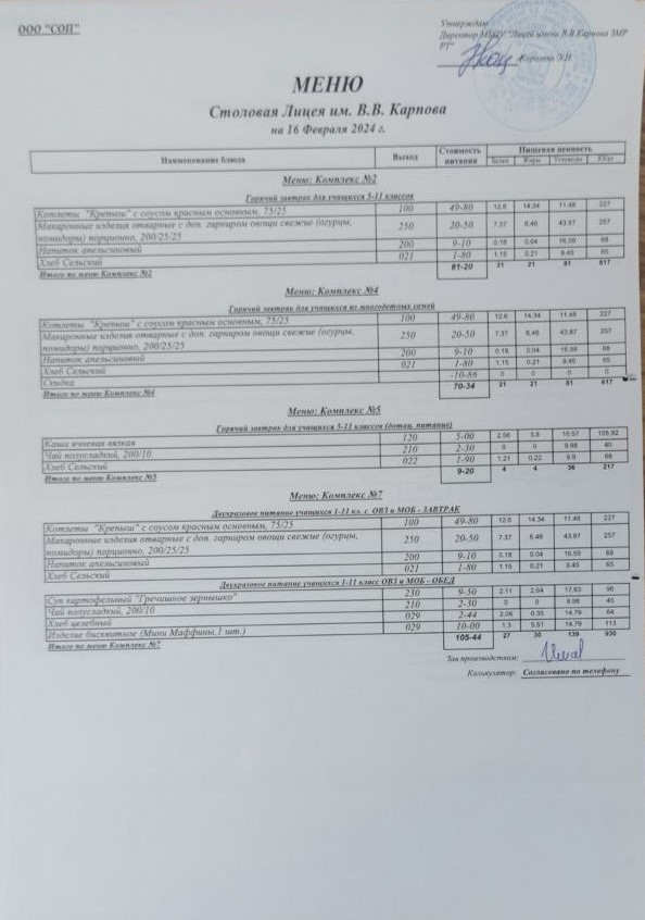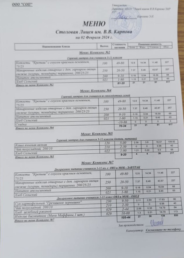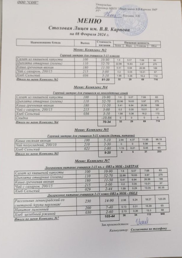 меню для учащихся с ОВЗ и мобилизованных февраль |