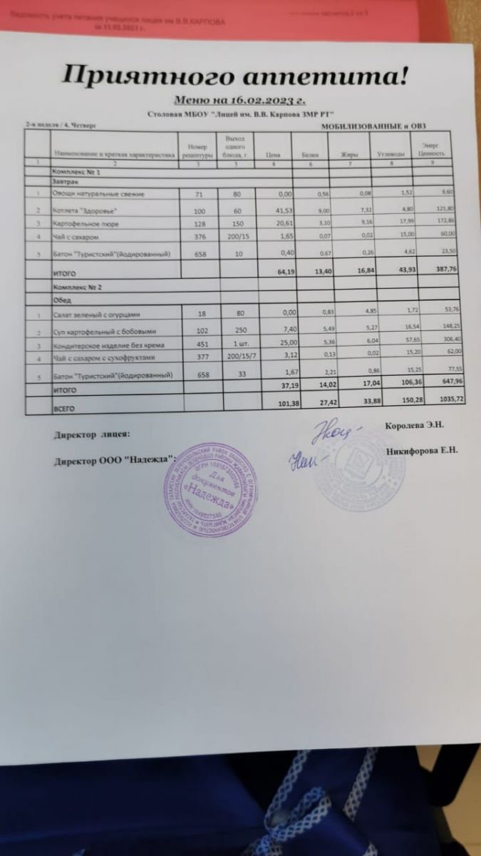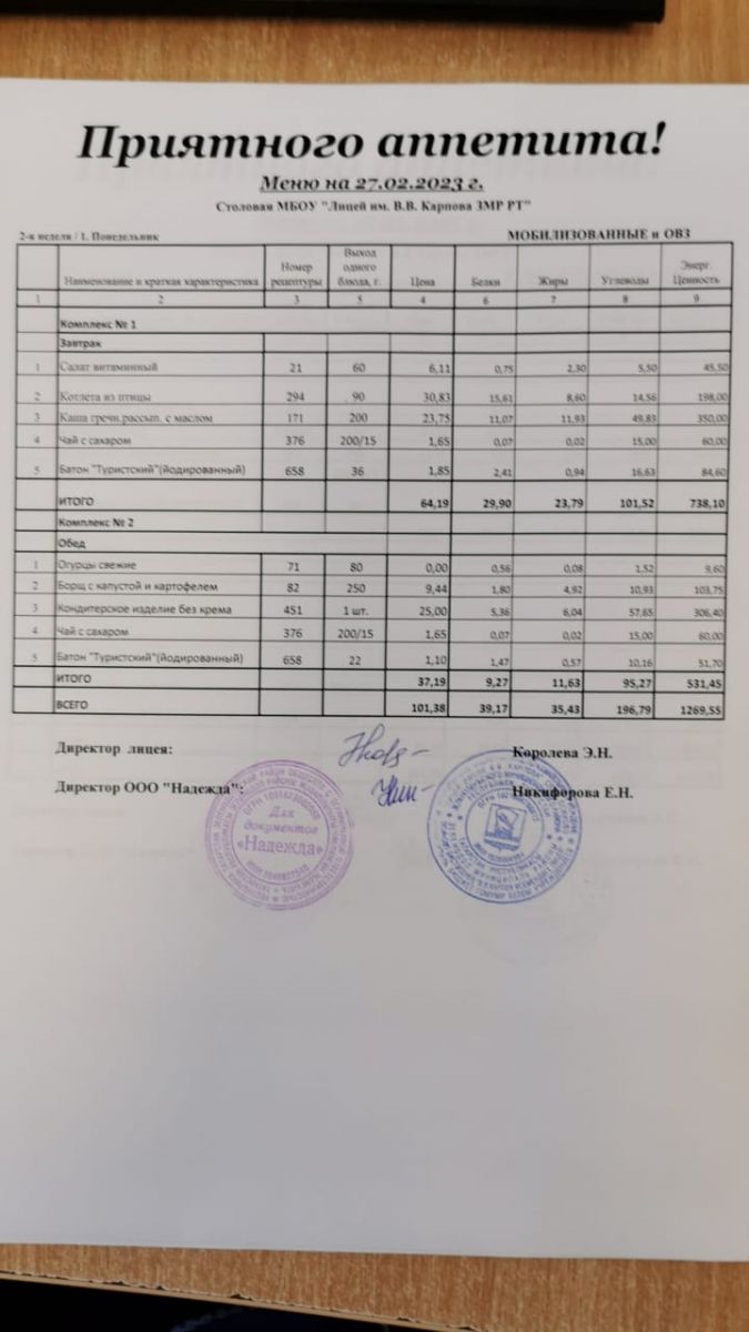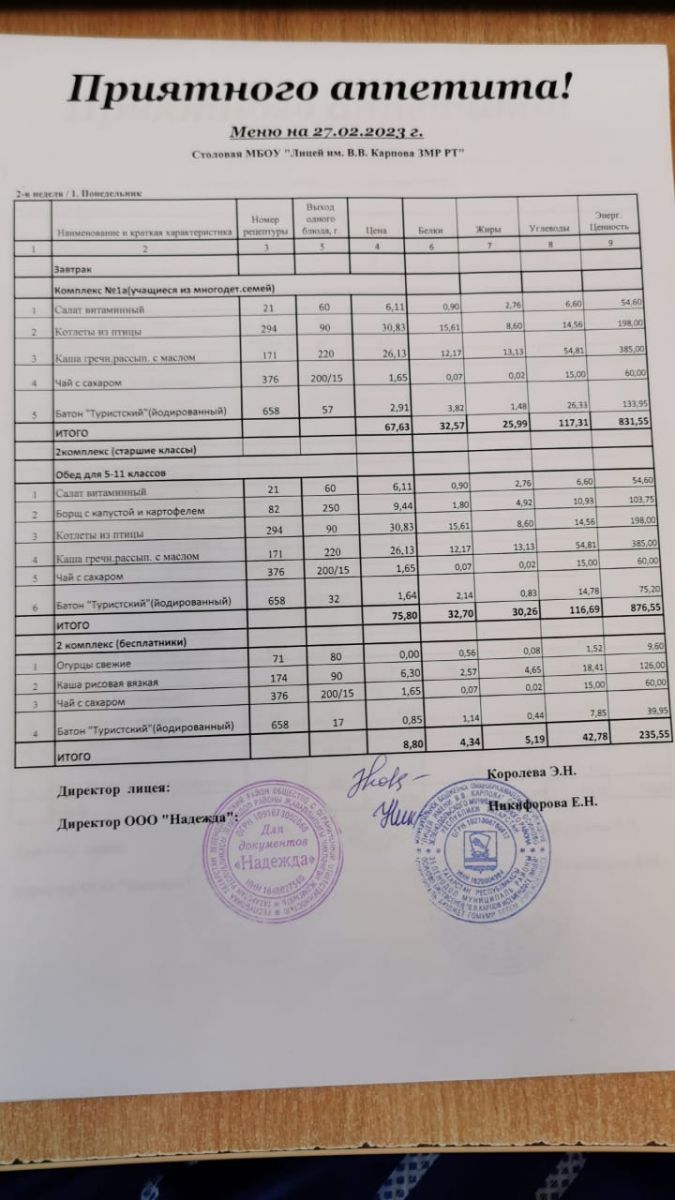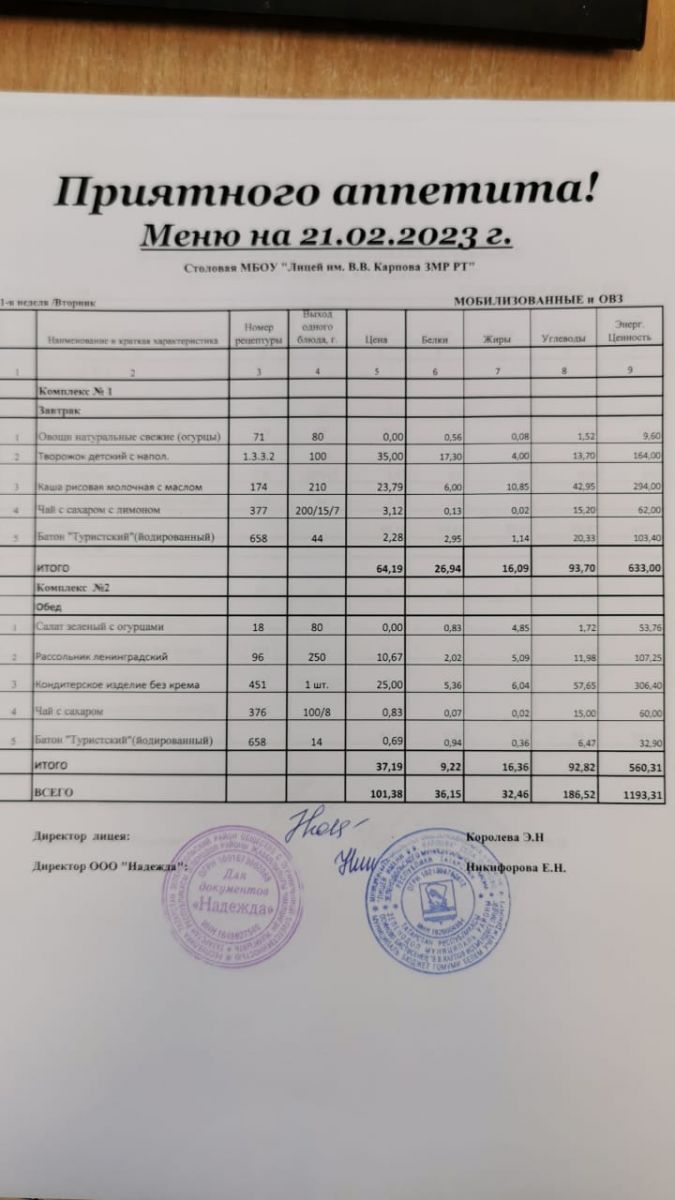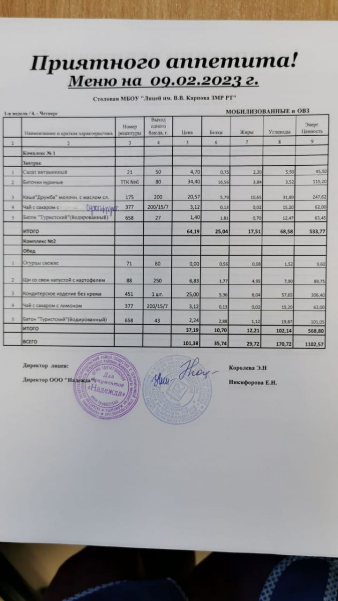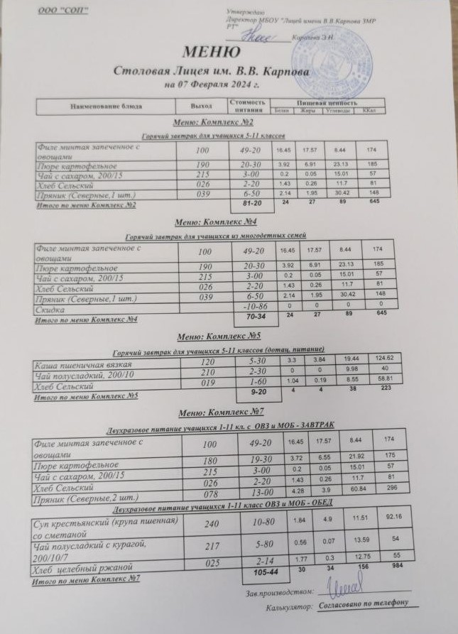 меню для учащихся с ОВЗ и мобилизованных февраль |