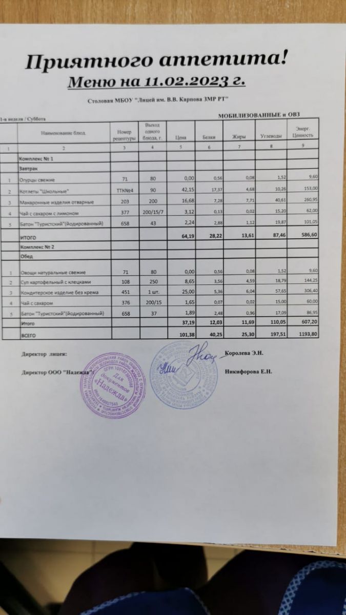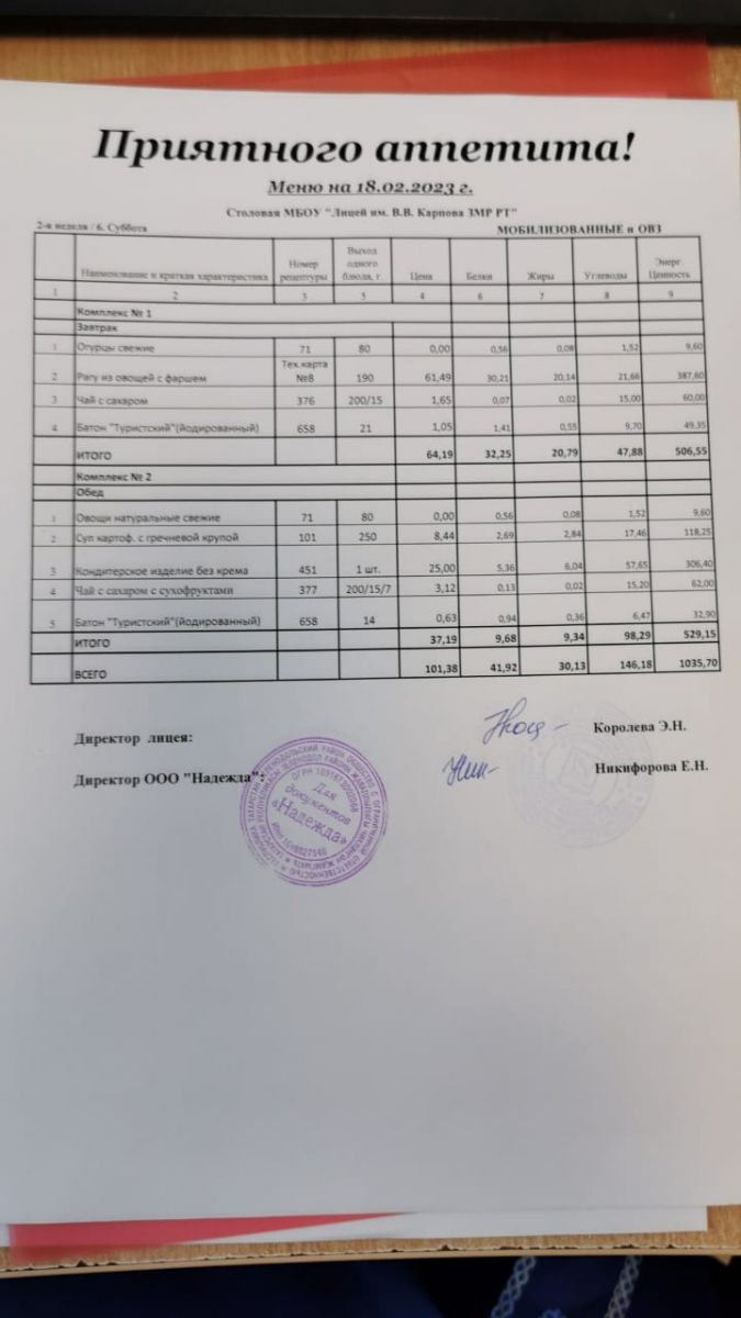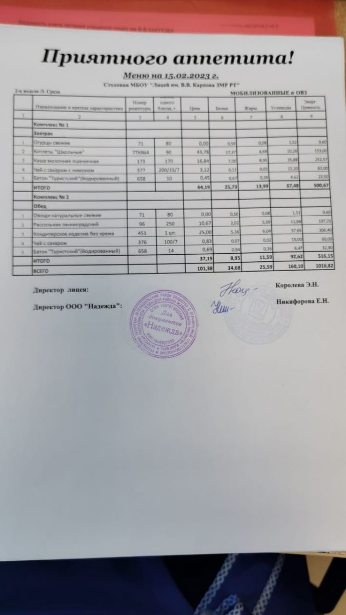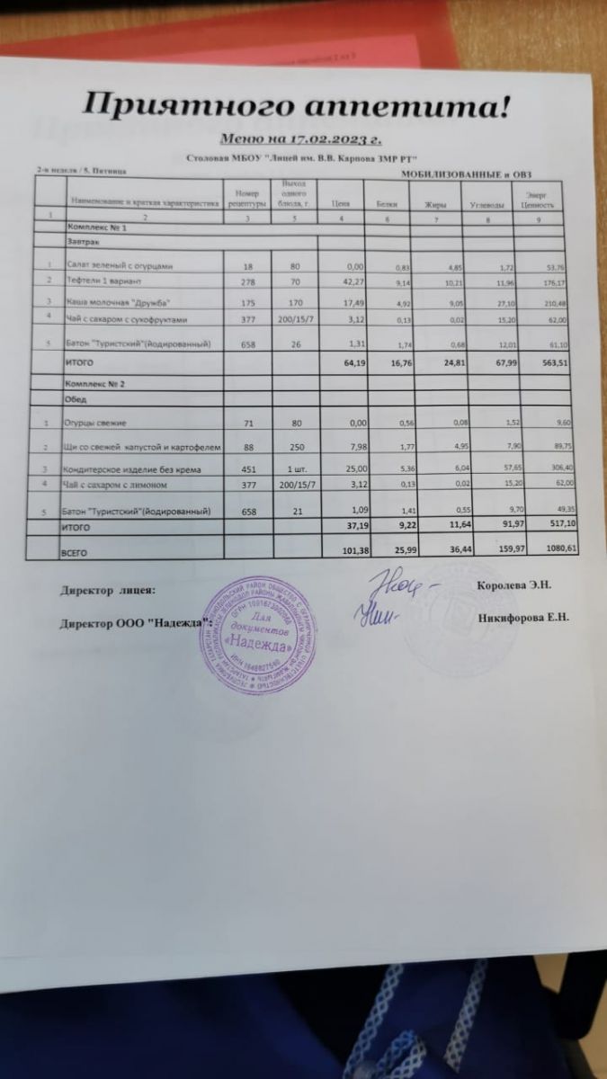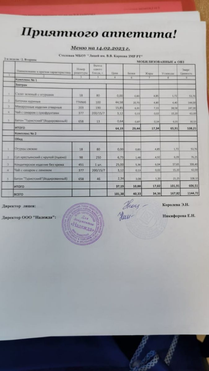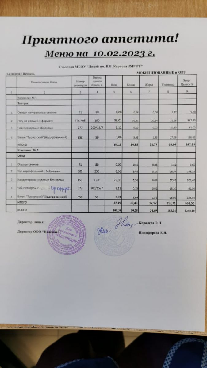 меню для учащихся с ОВЗ и мобилизованных февраль |