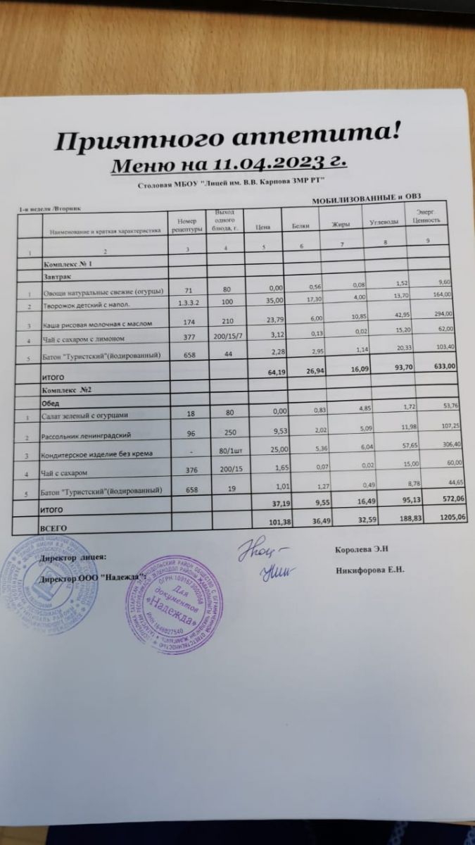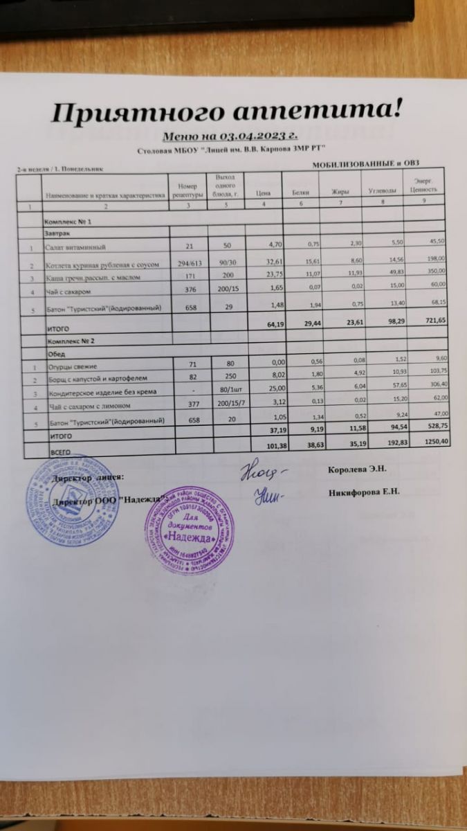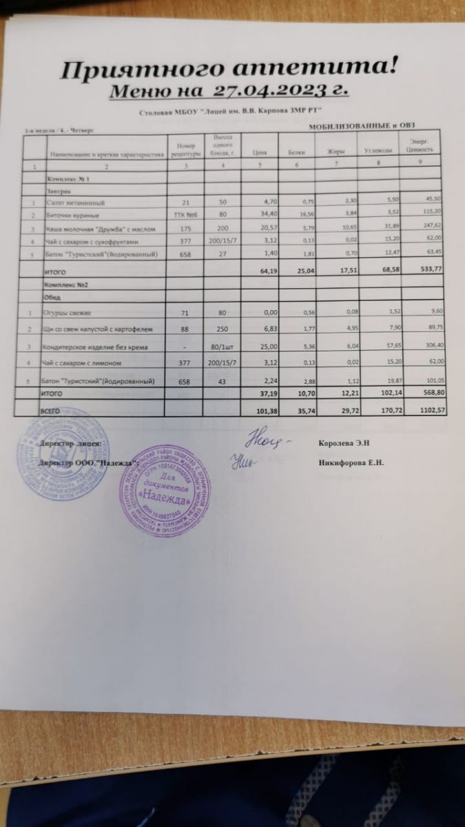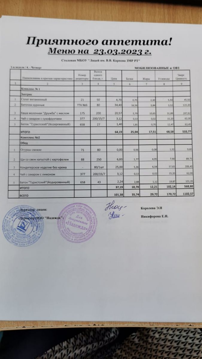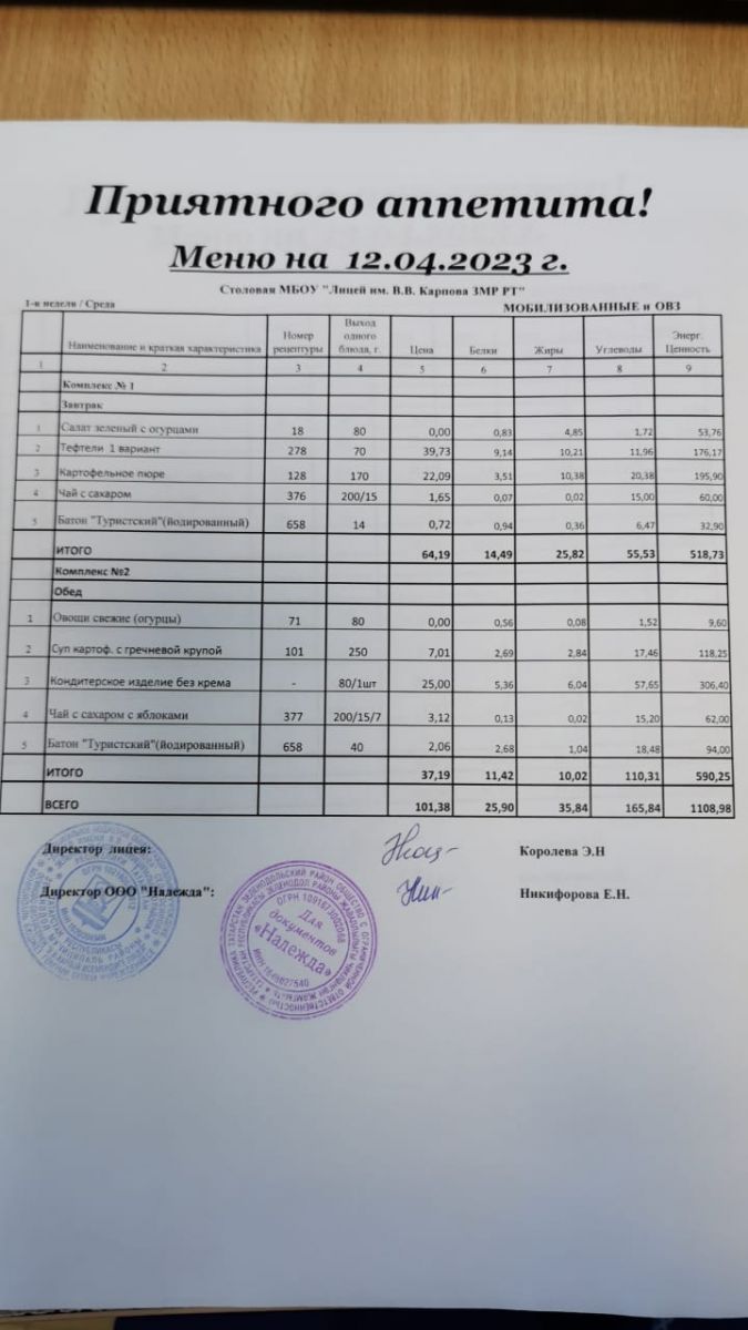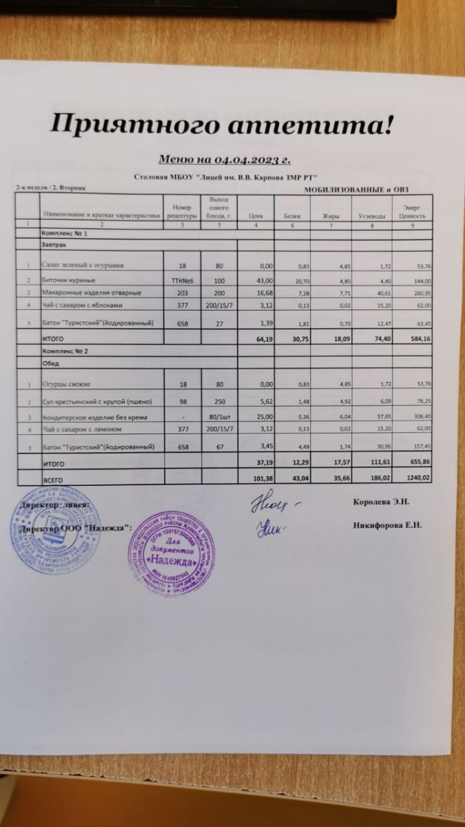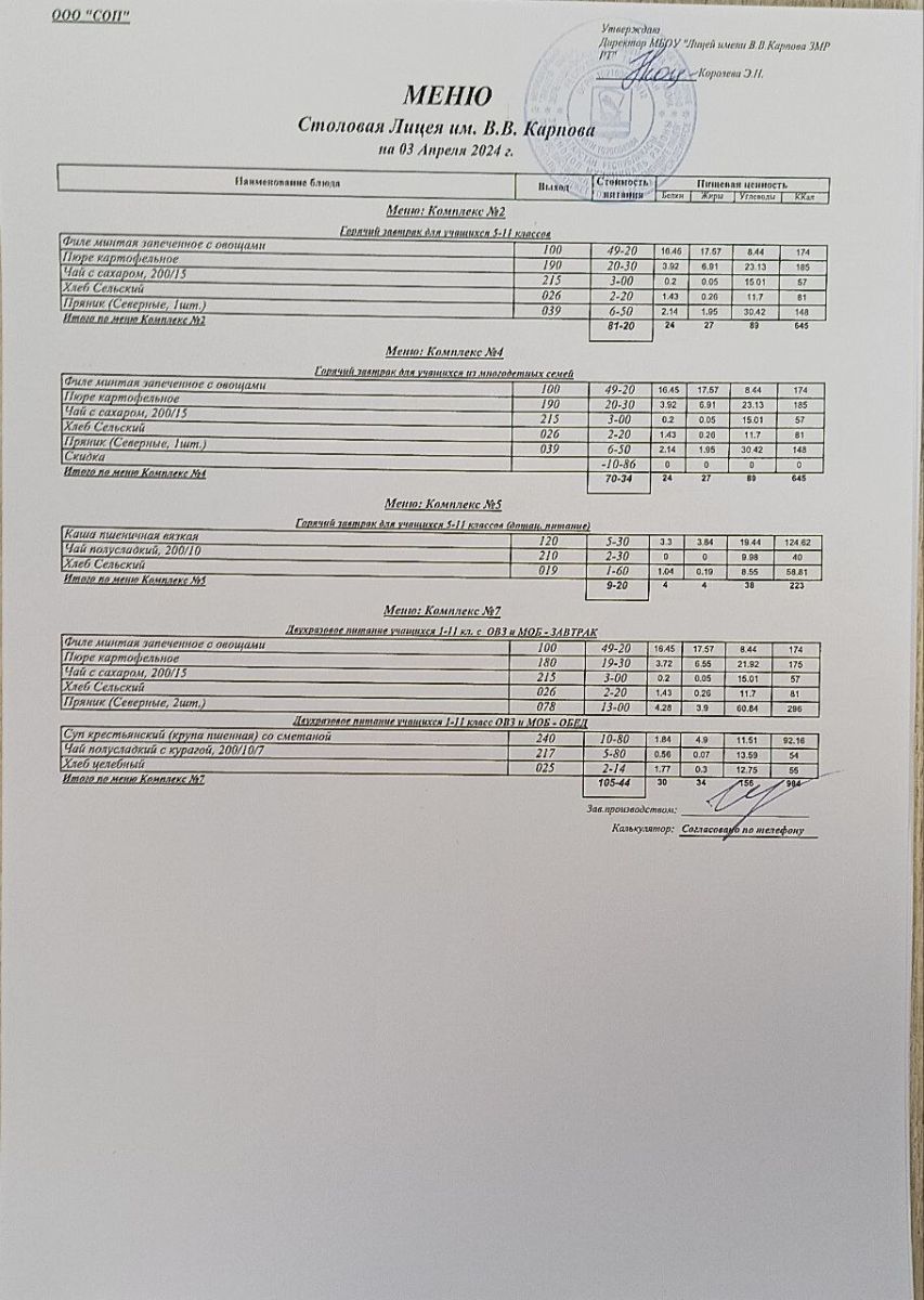 меню для учащихся с ОВЗ и мобилизованных апрель |