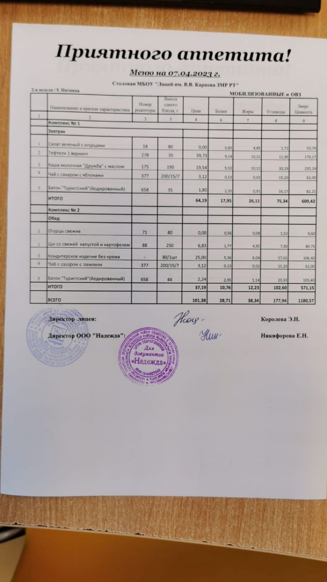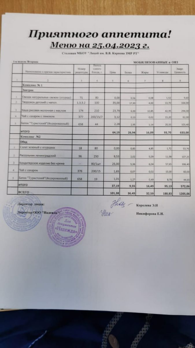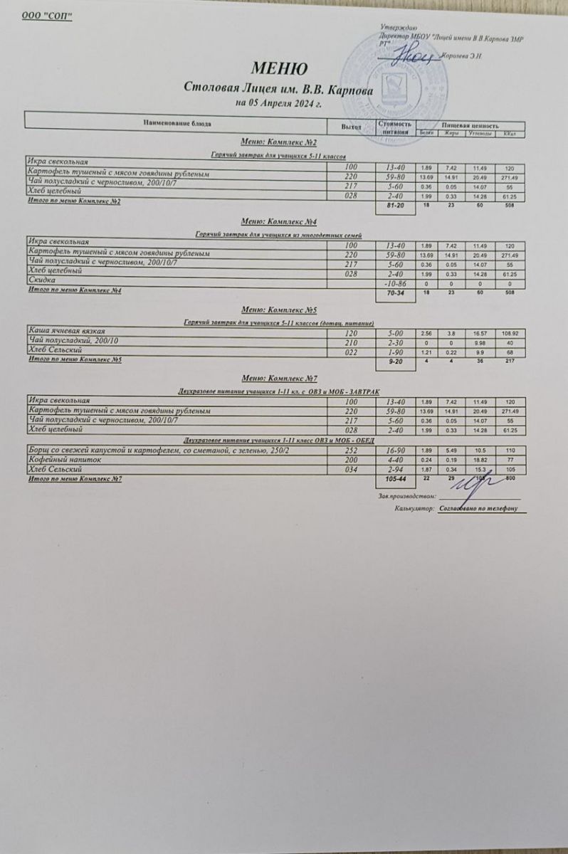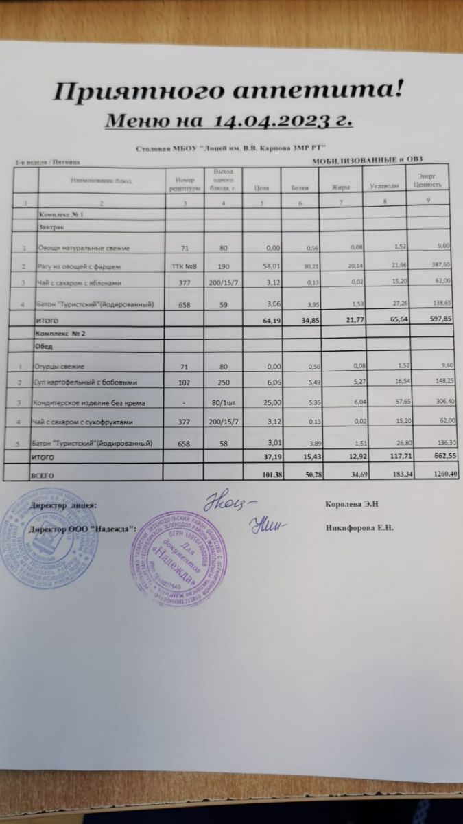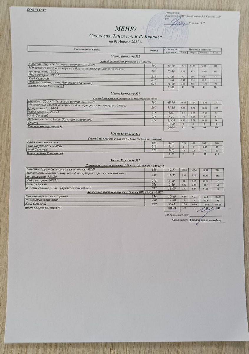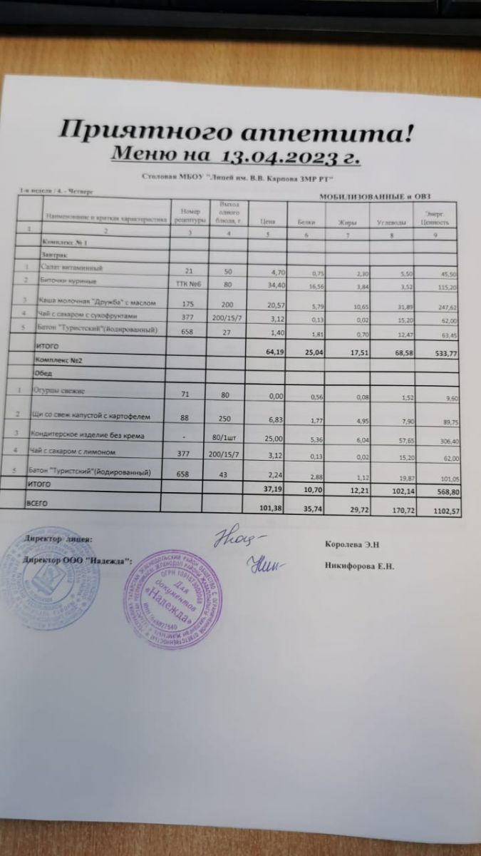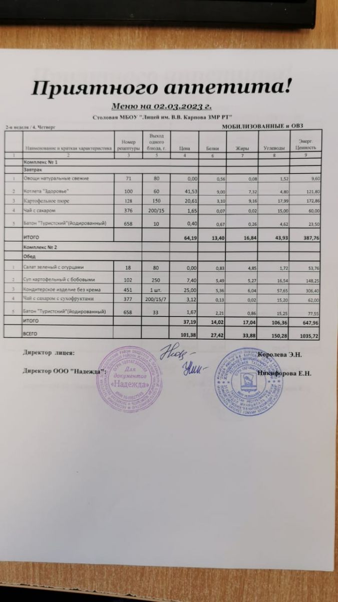 меню для учащихся с ОВЗ и мобилизованных апрель |