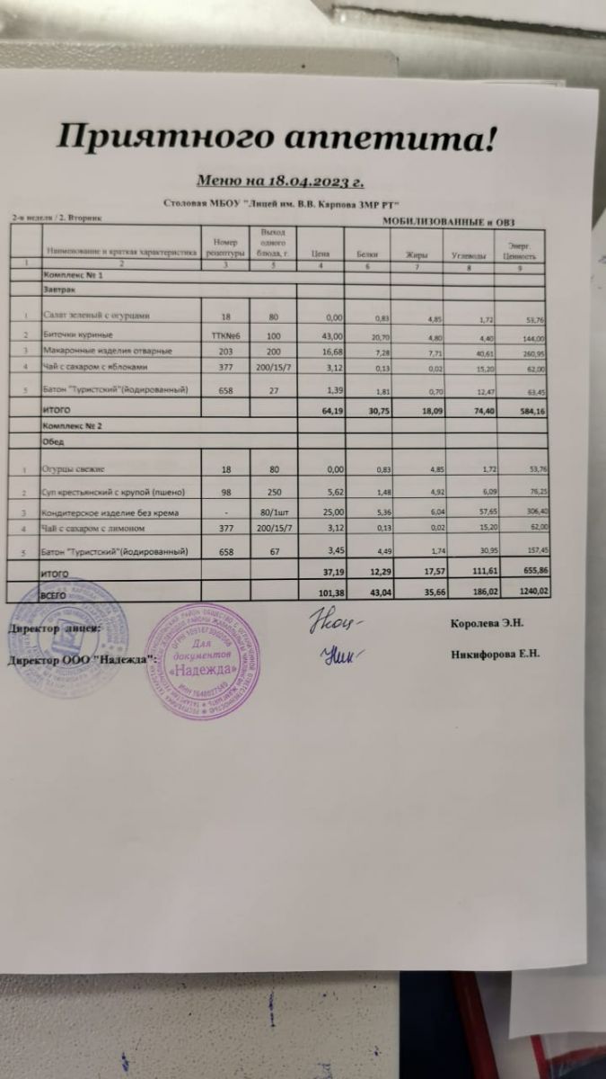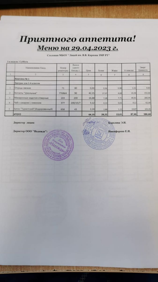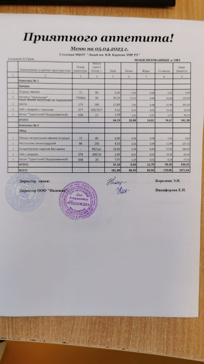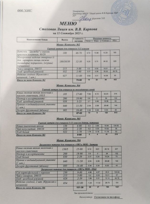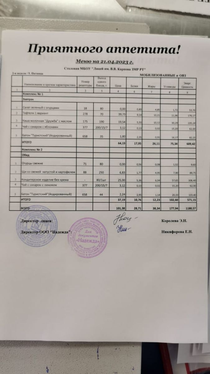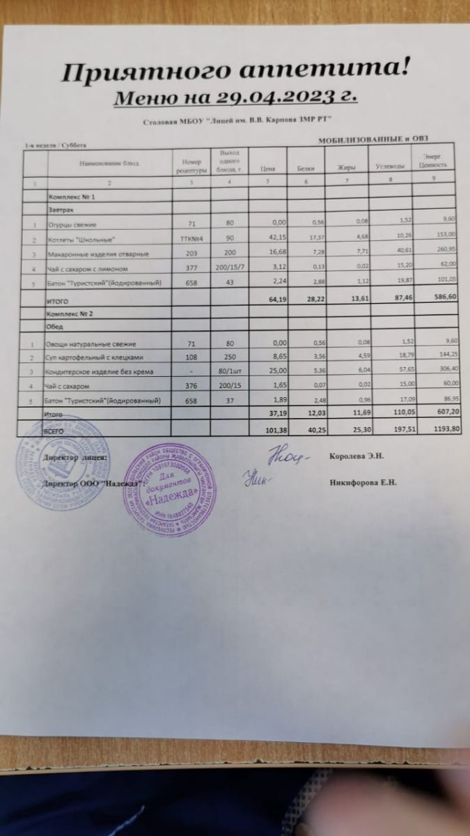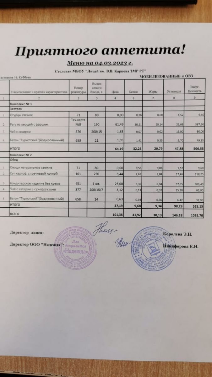 меню для учащихся с ОВЗ и мобилизованных апрель |