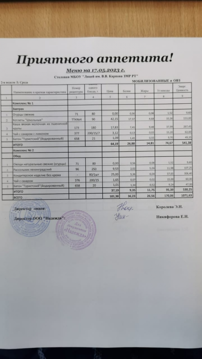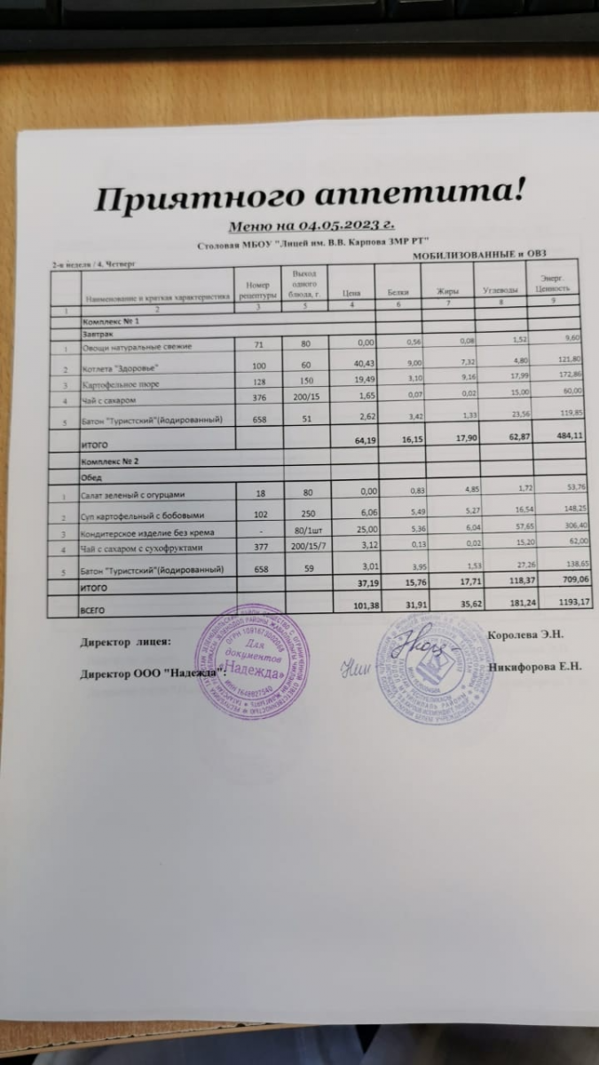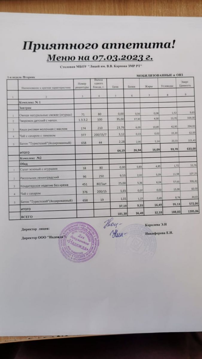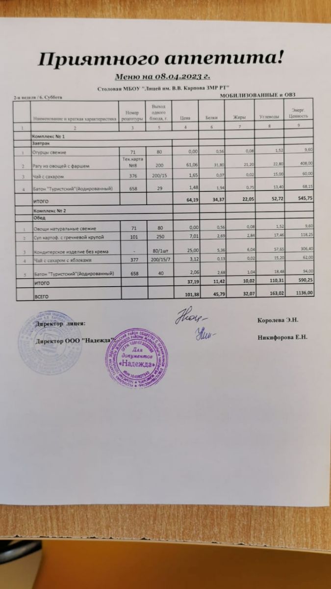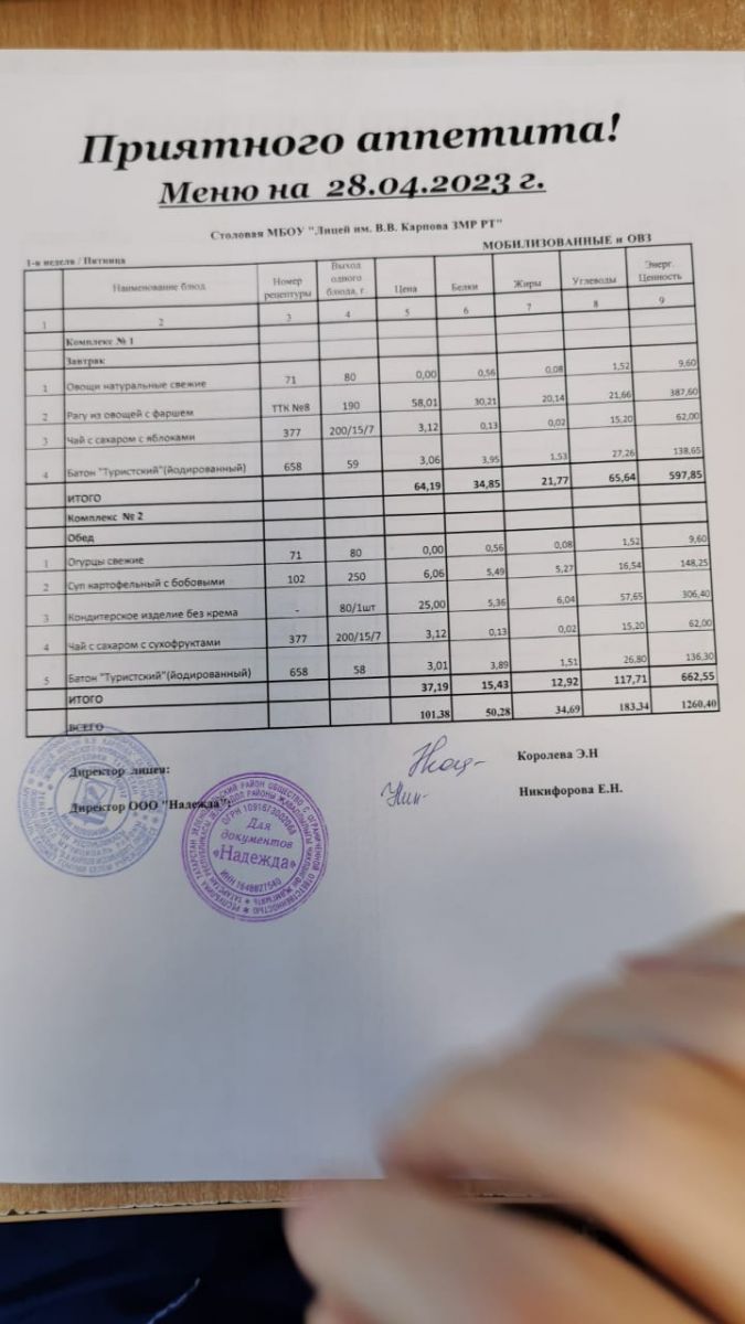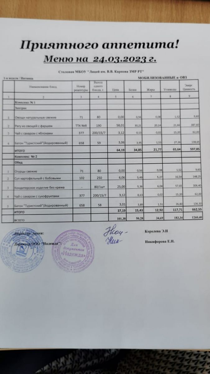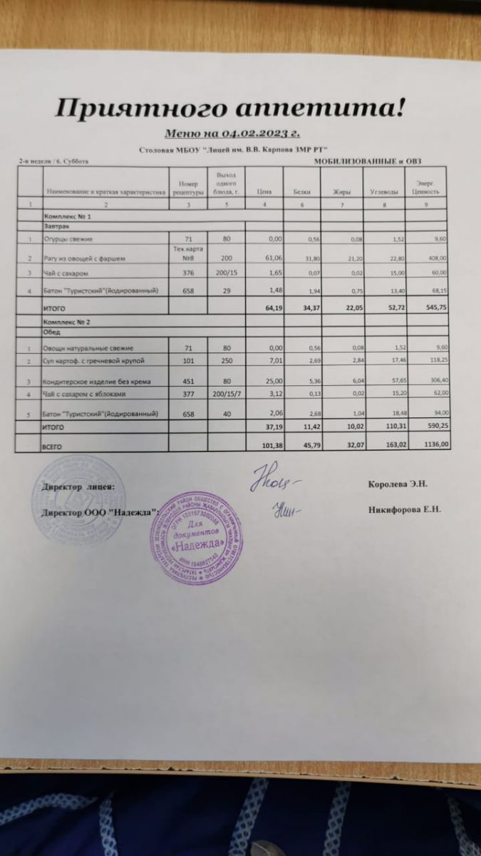 меню для учащихся с ОВЗ и мобилизованных апрель |