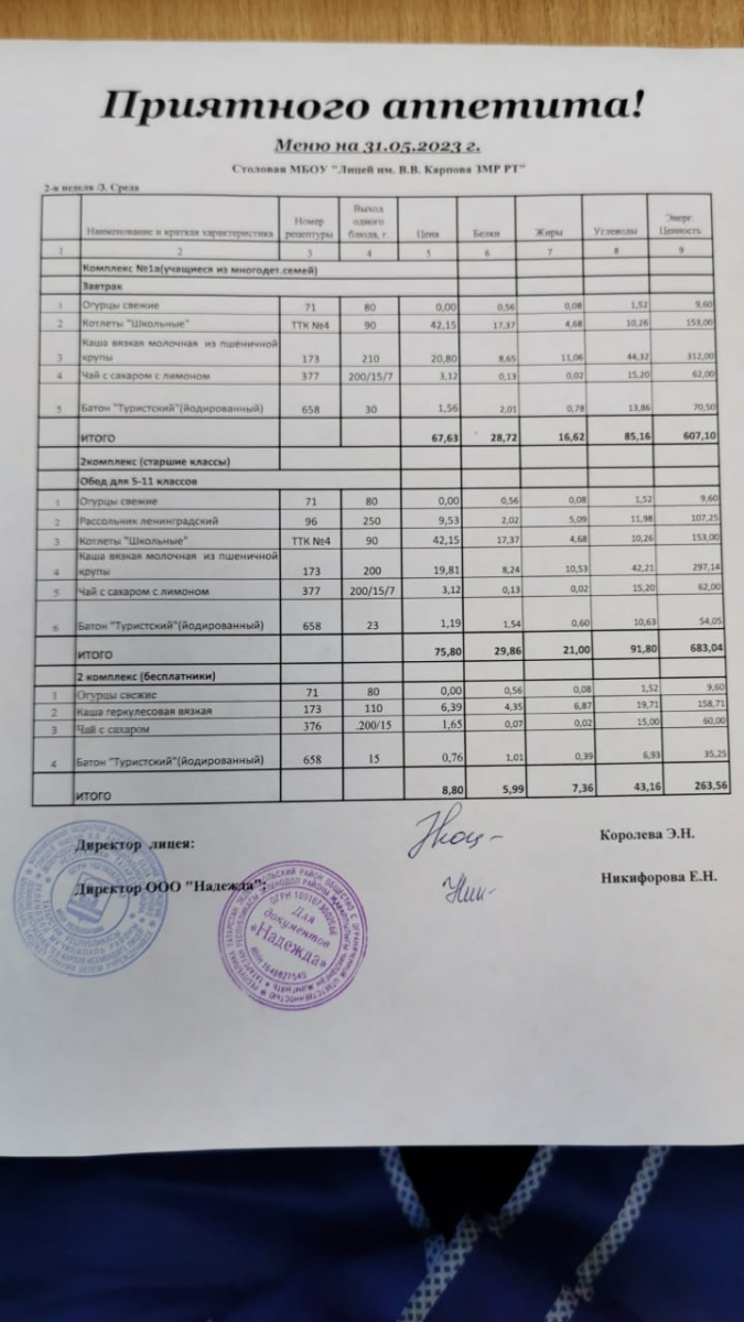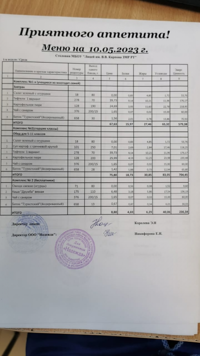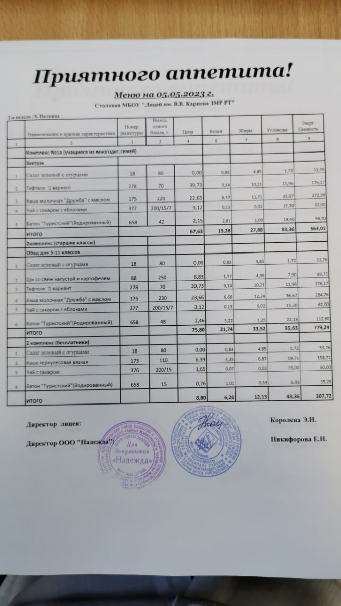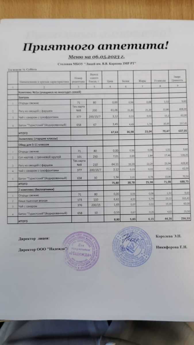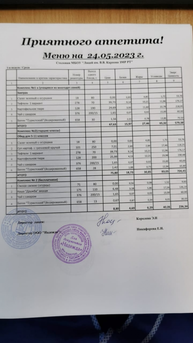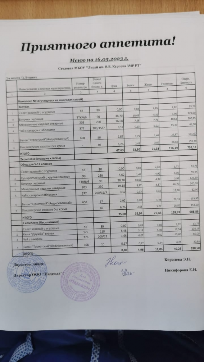 меню для учащихся 5-11 классов, многодетных, бесплатников май |