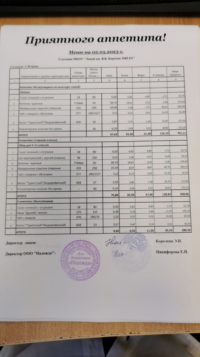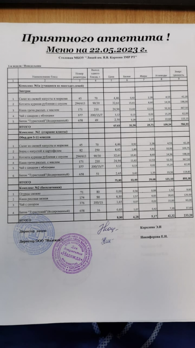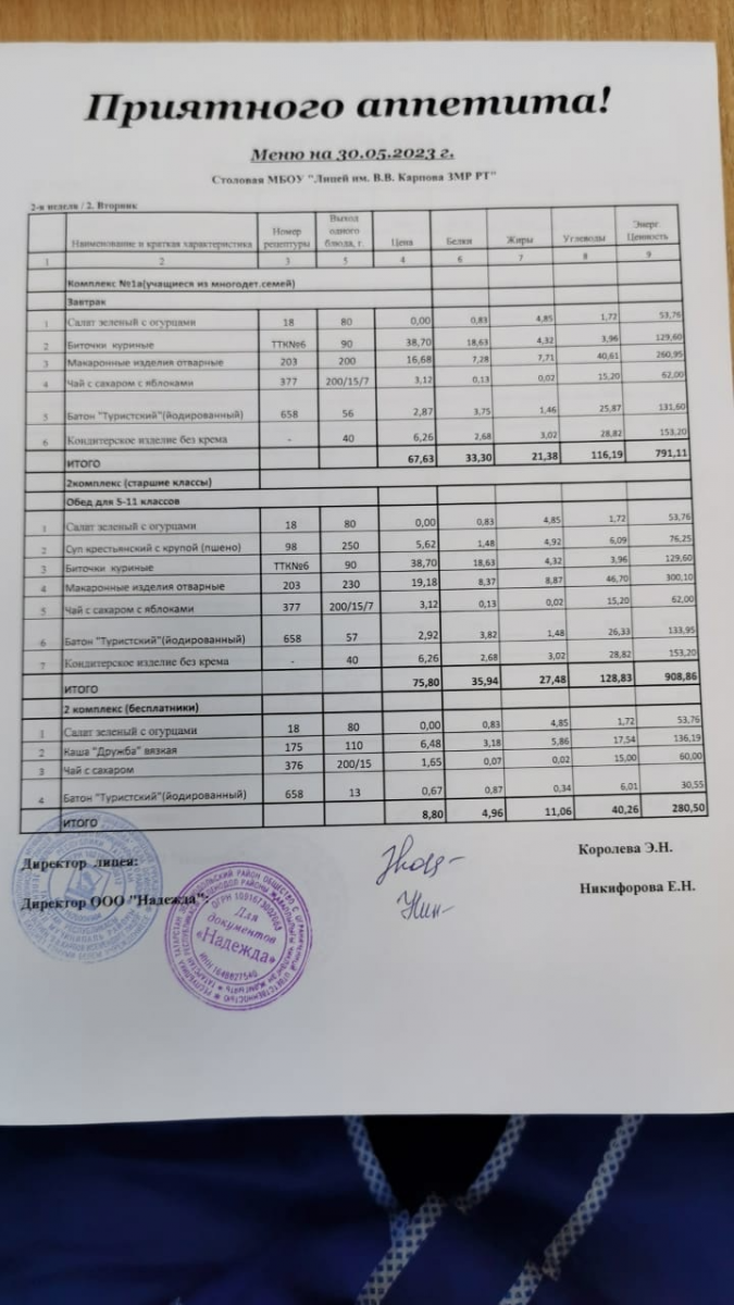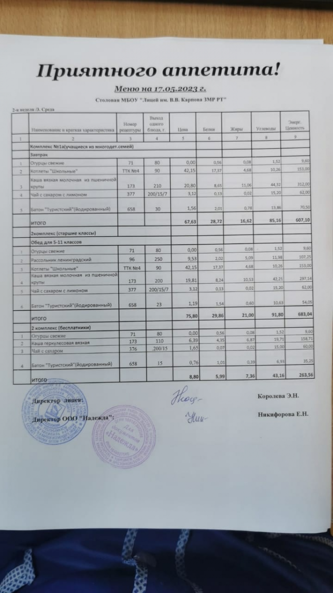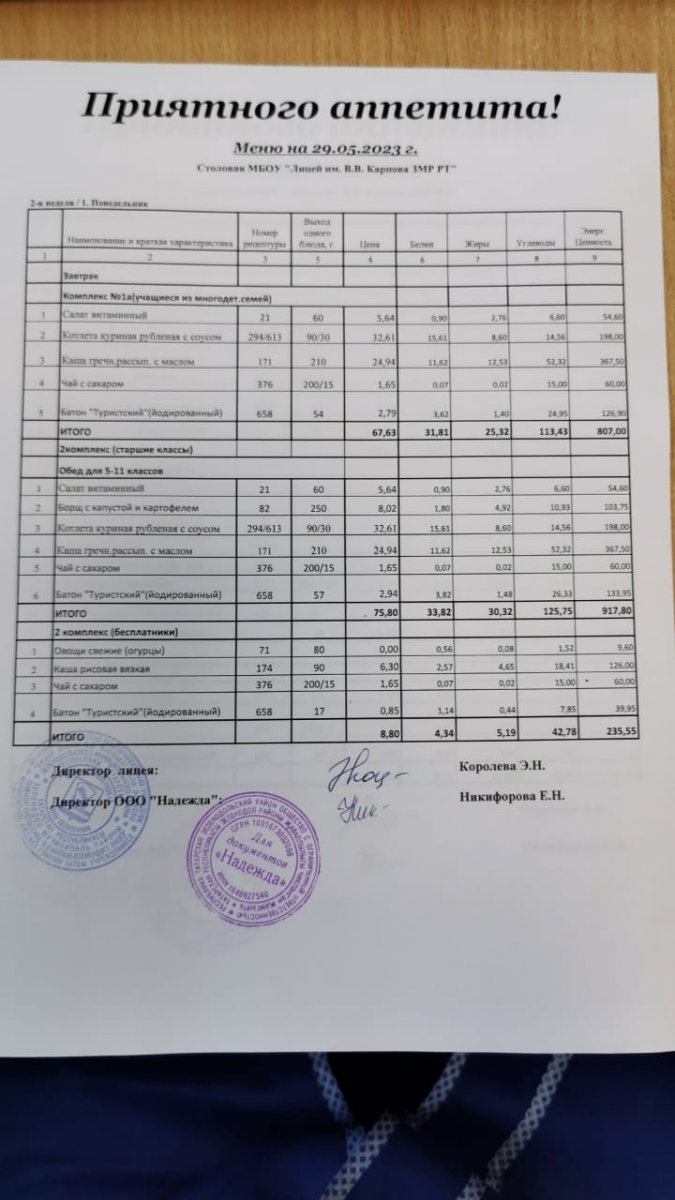 меню для учащихся 5-11 классов, многодетных, бесплатников май |