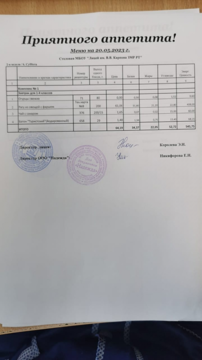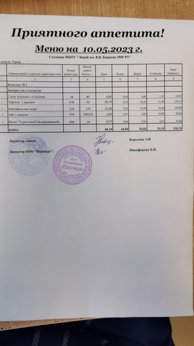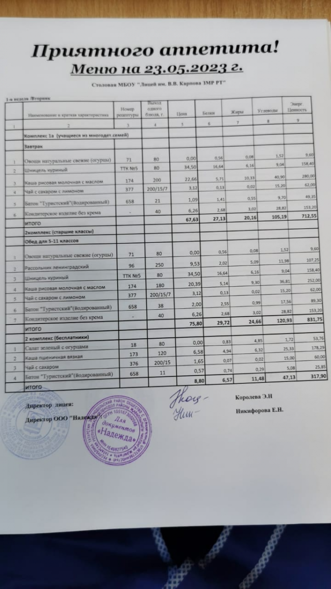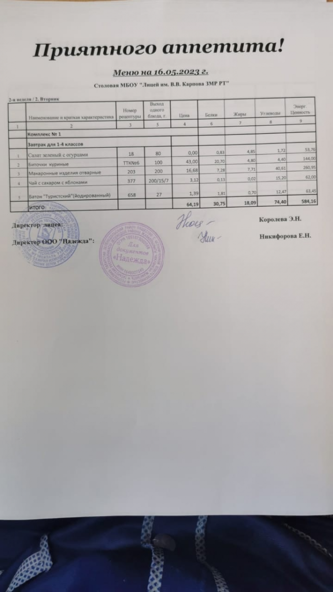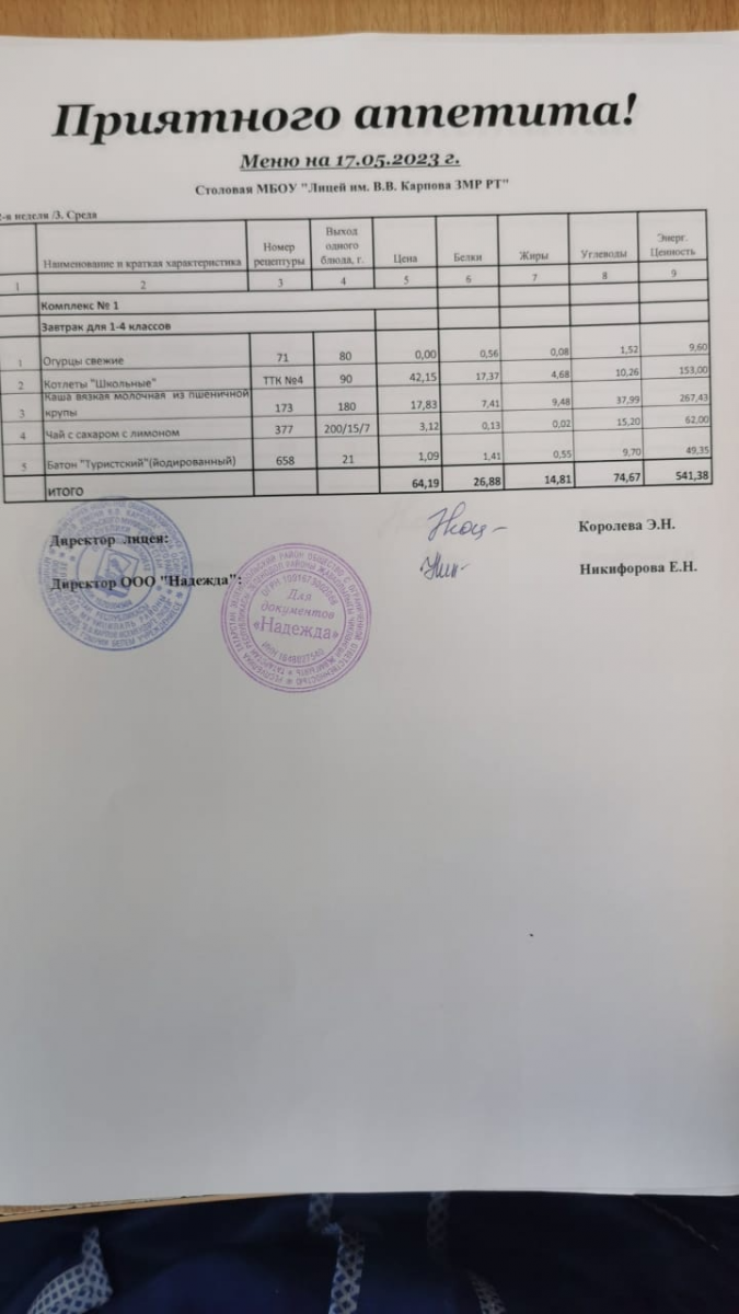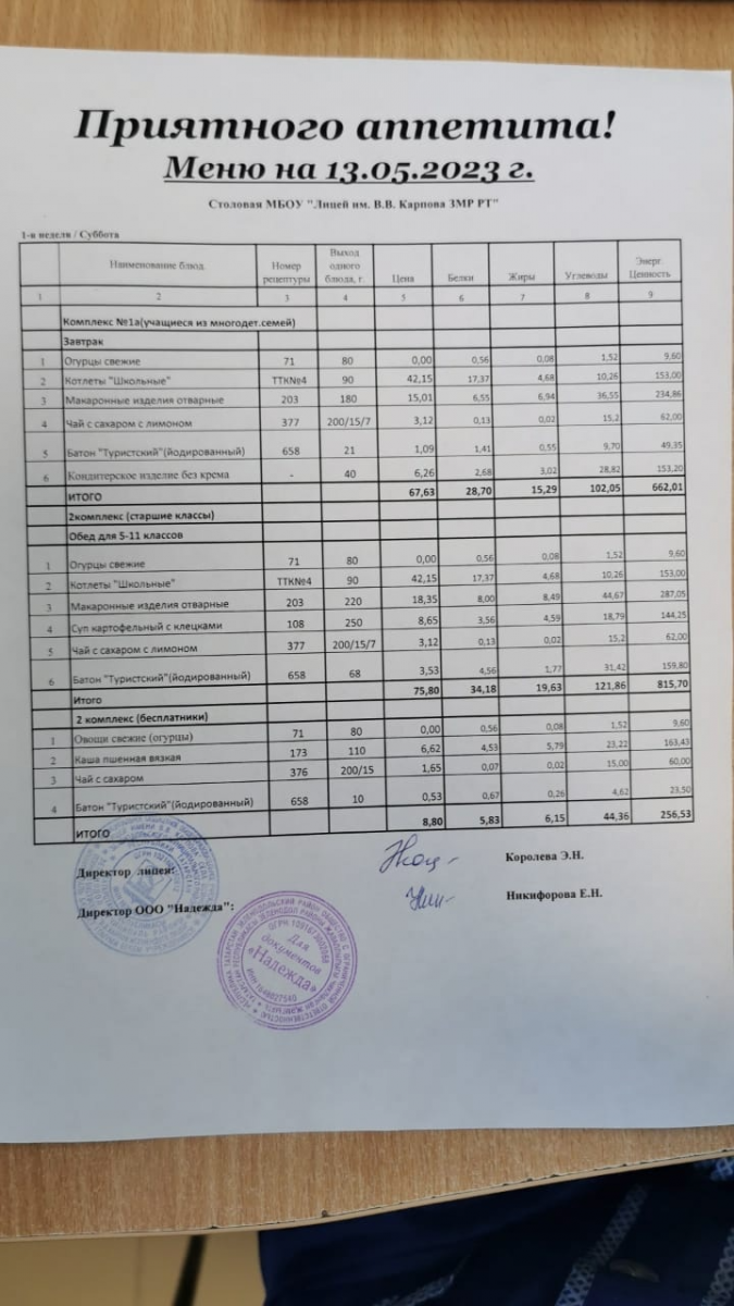 меню для учащихся 5-11 классов, многодетных, бесплатников май |
