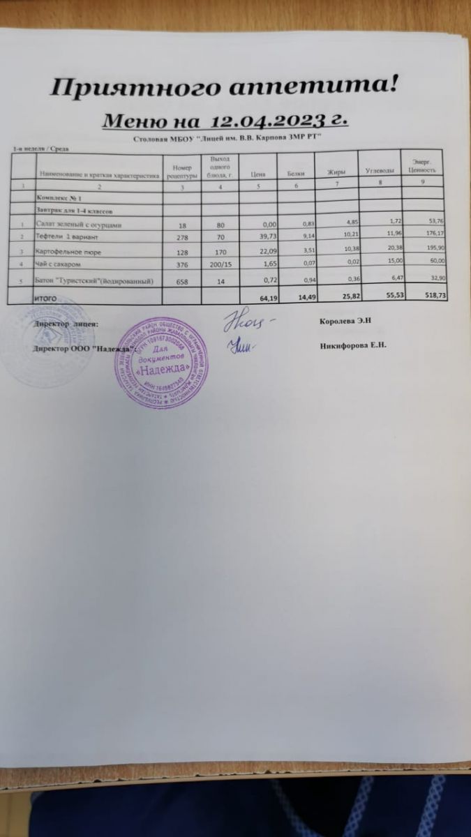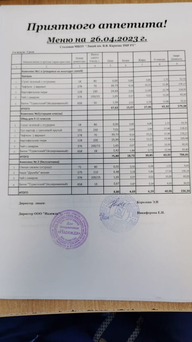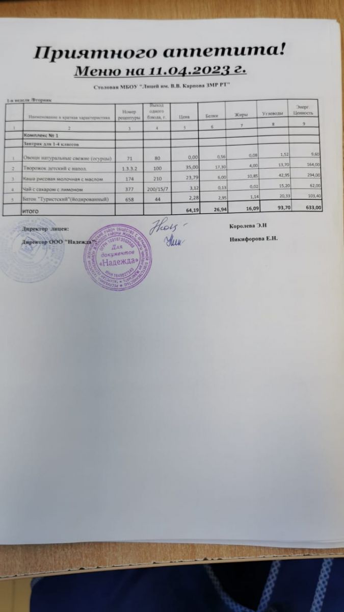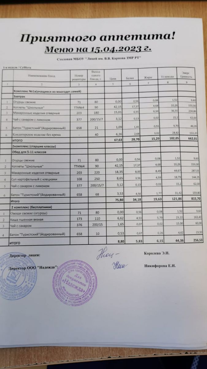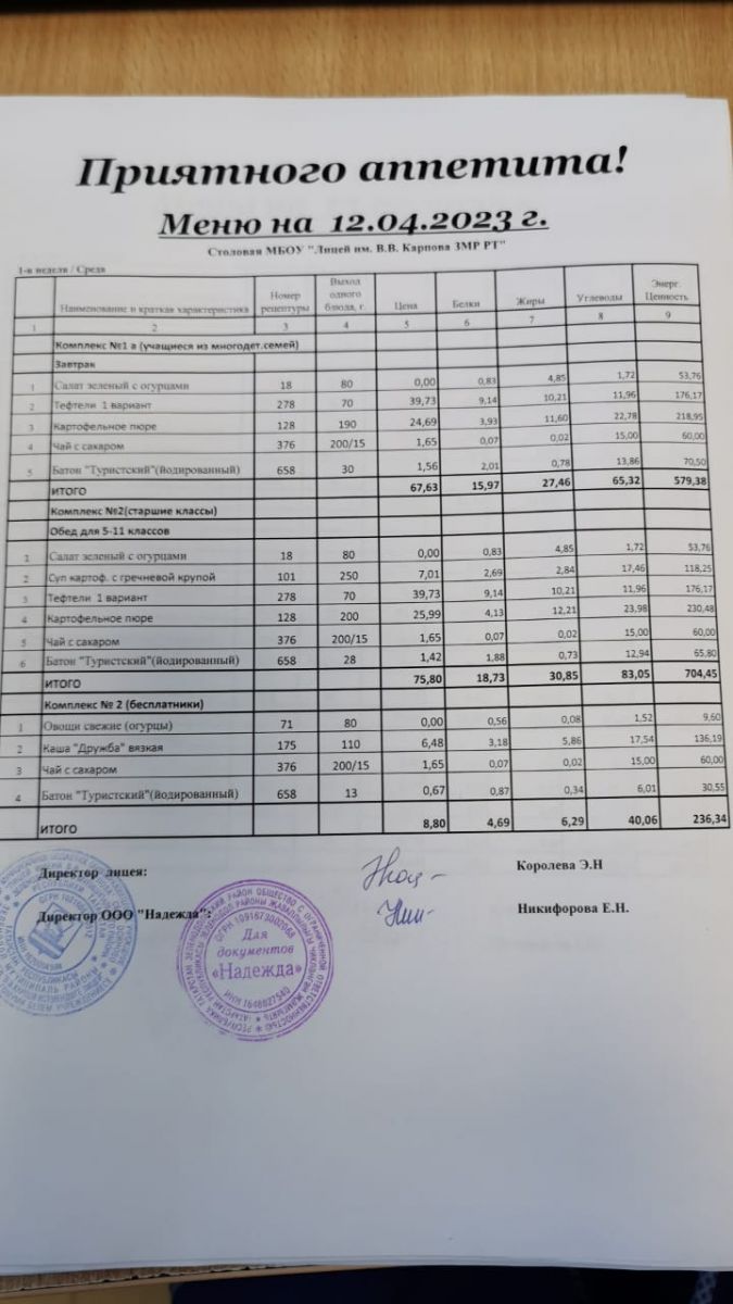 меню для учащихся 5-11 классов, многодетных, бесплатников апрель |