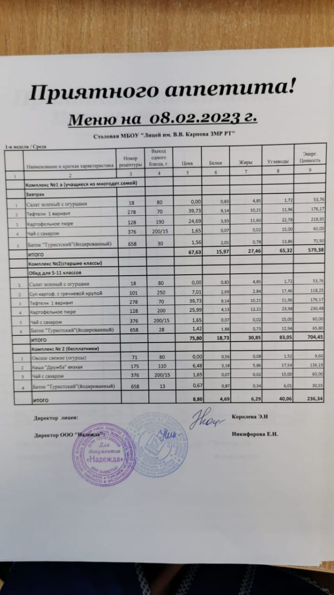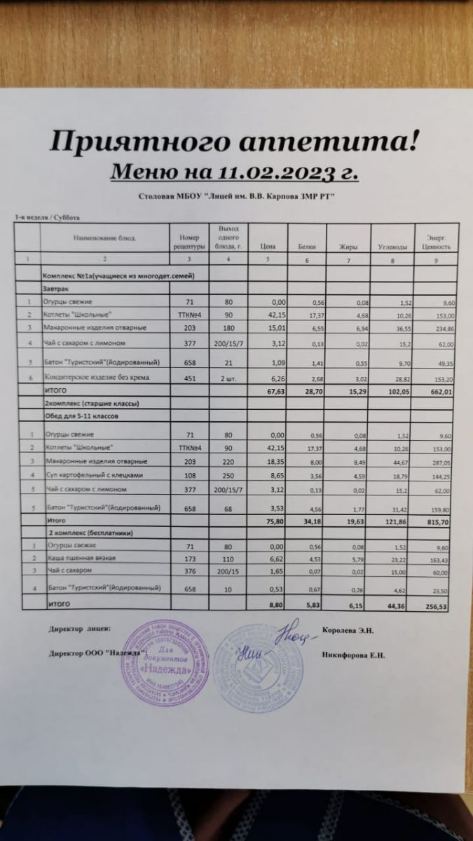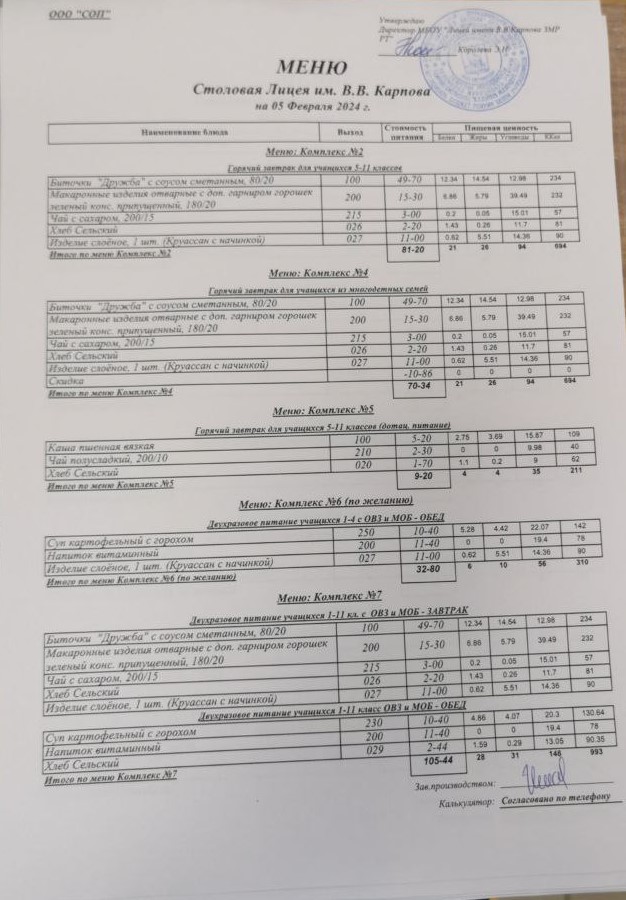 меню для учащихся 5-11 классов, многодетных, бесплатников февраль |